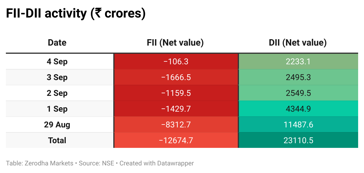 Here’s the trend of FII-DII activity from the last 5 days: