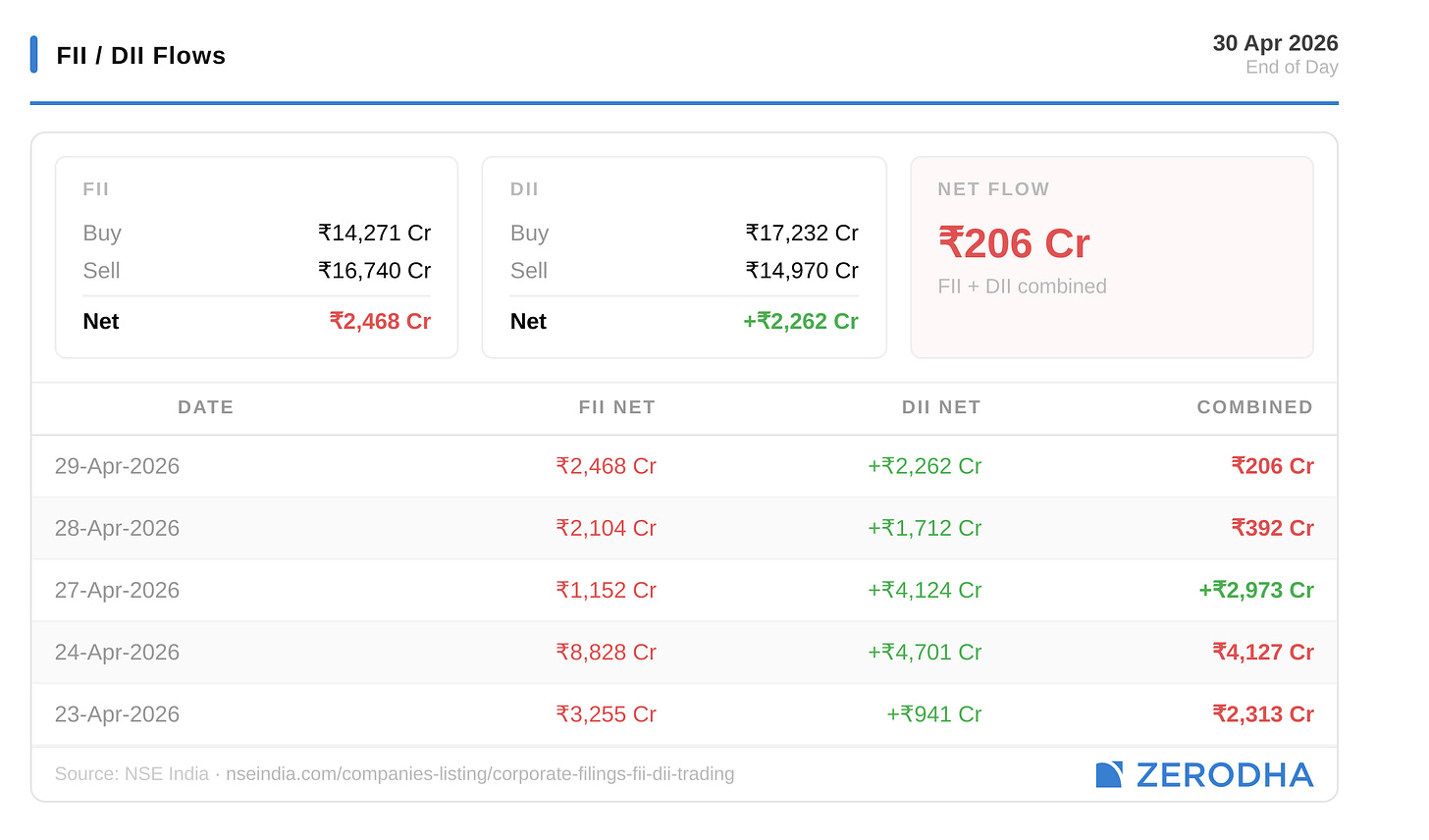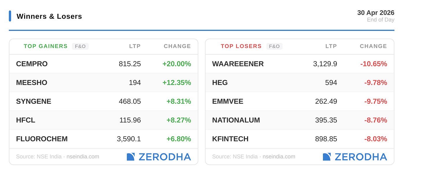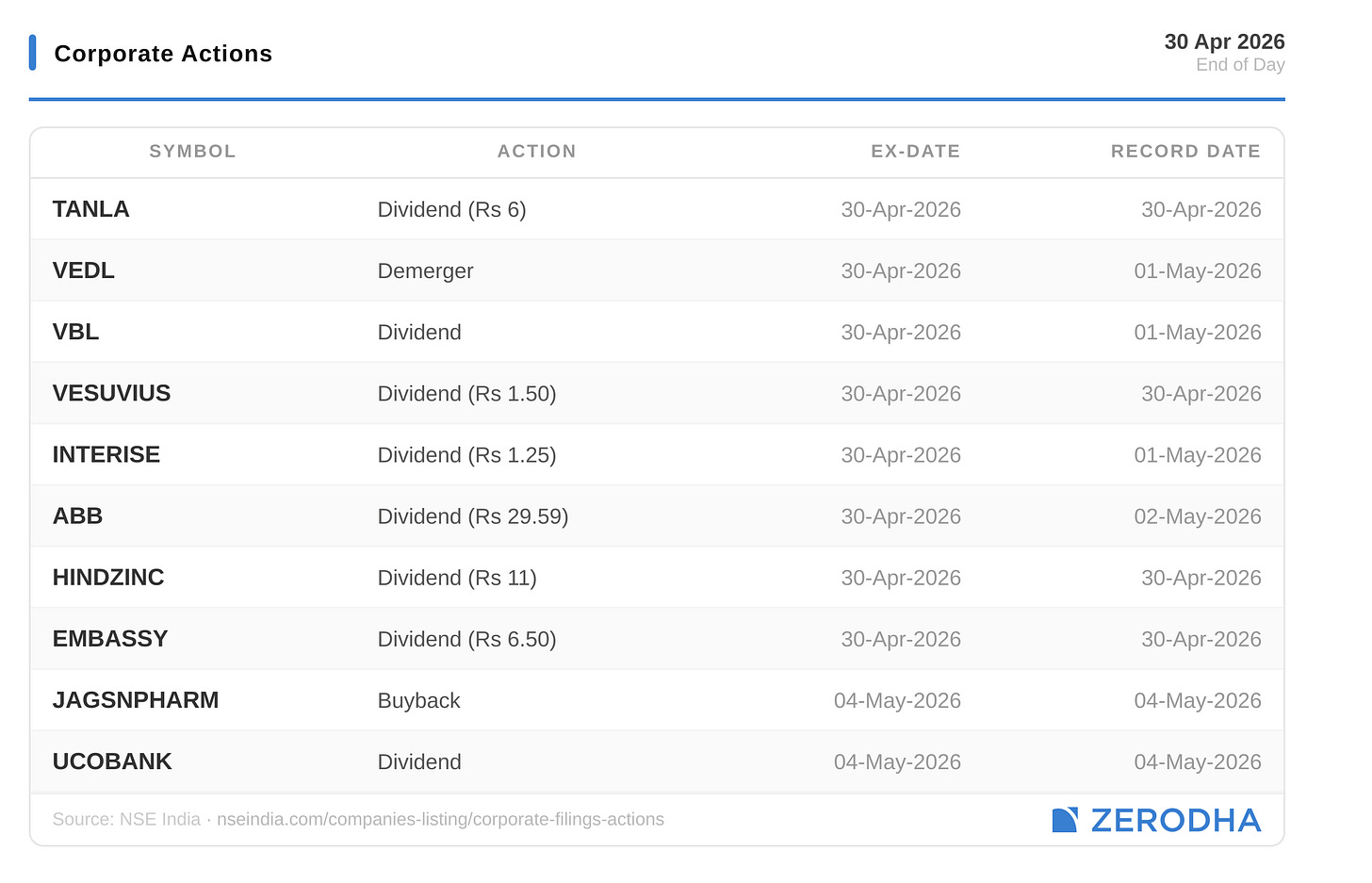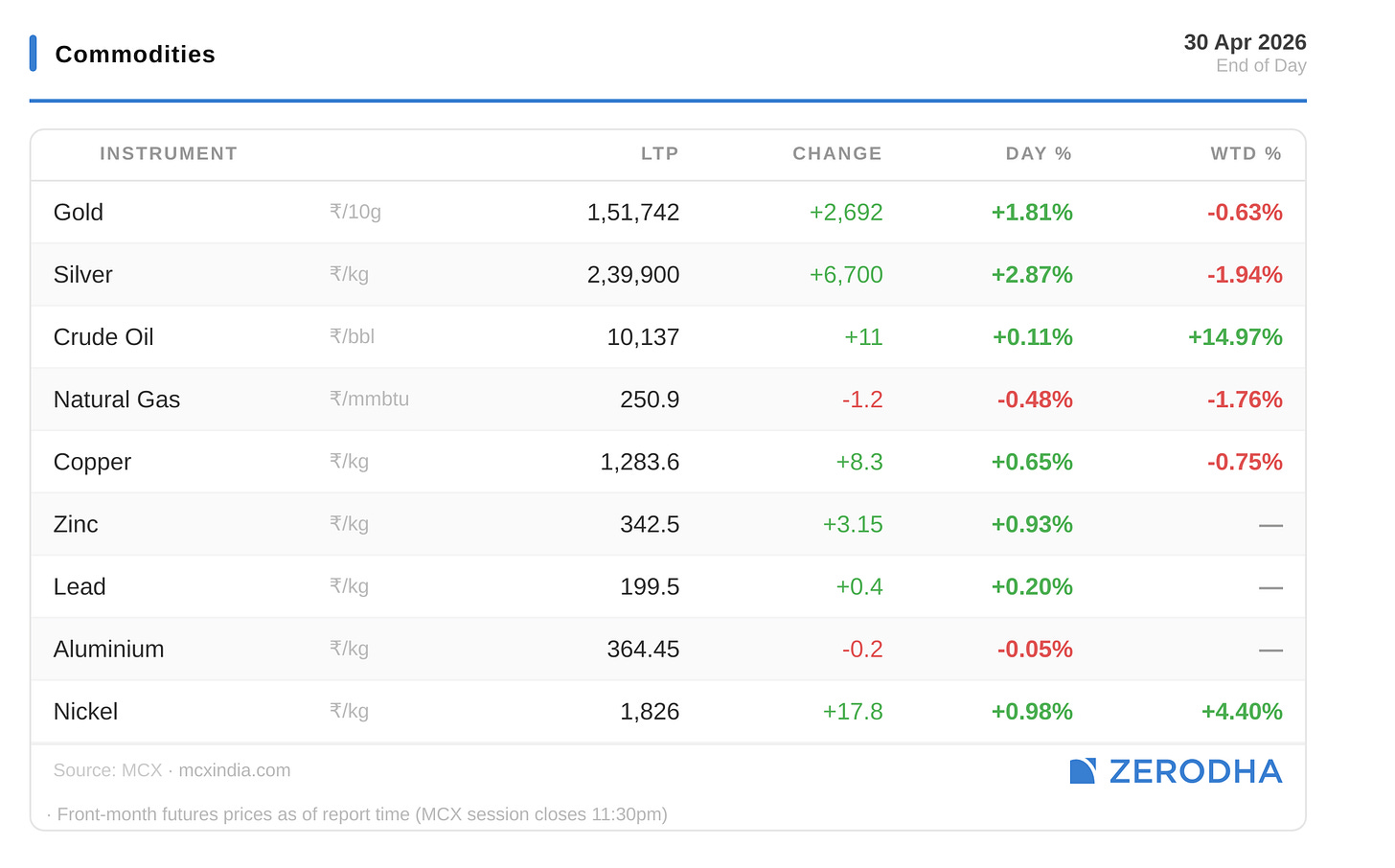 Published by Zerodha. Not investment advice. Data from NSE, BSE, MCX.