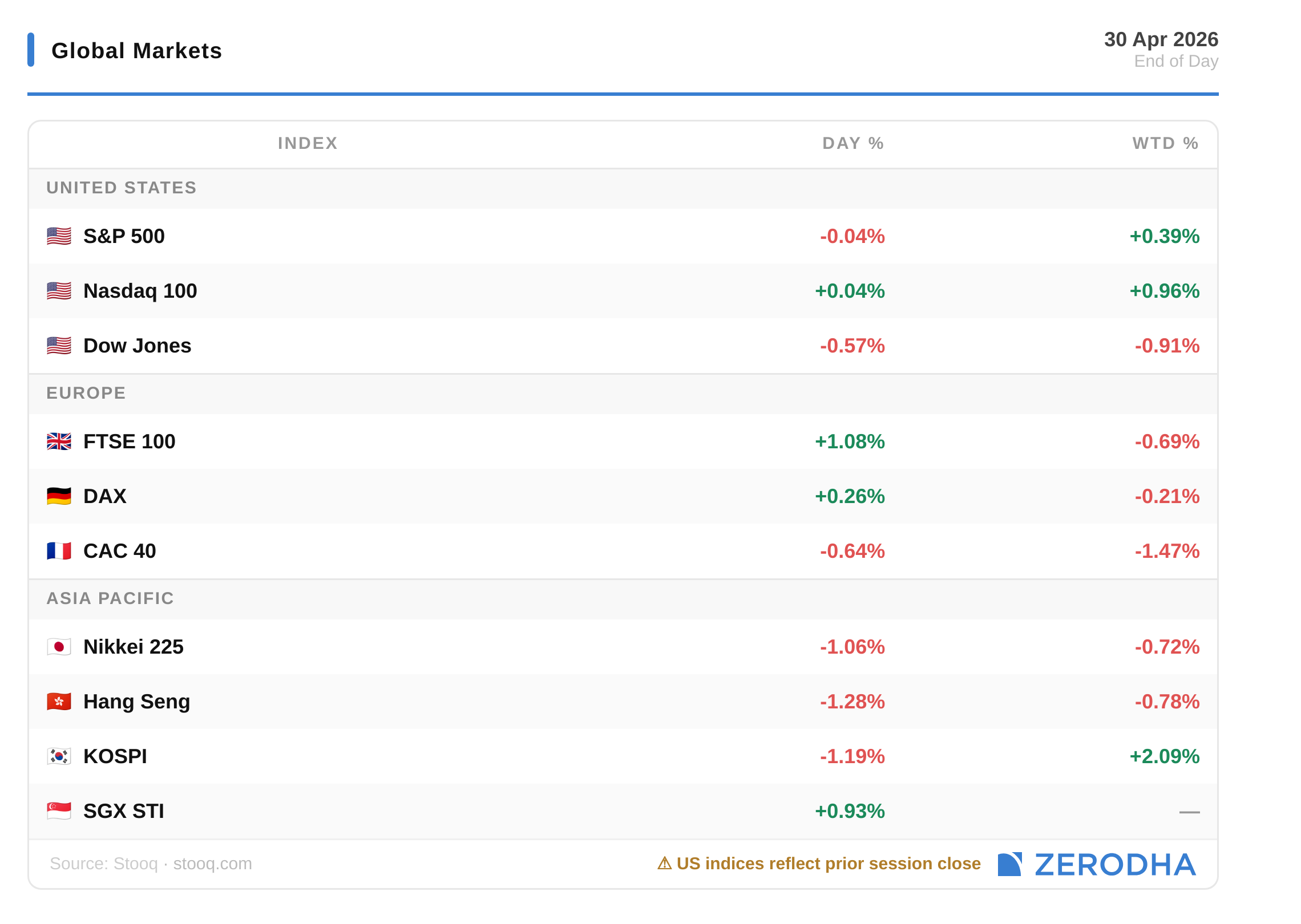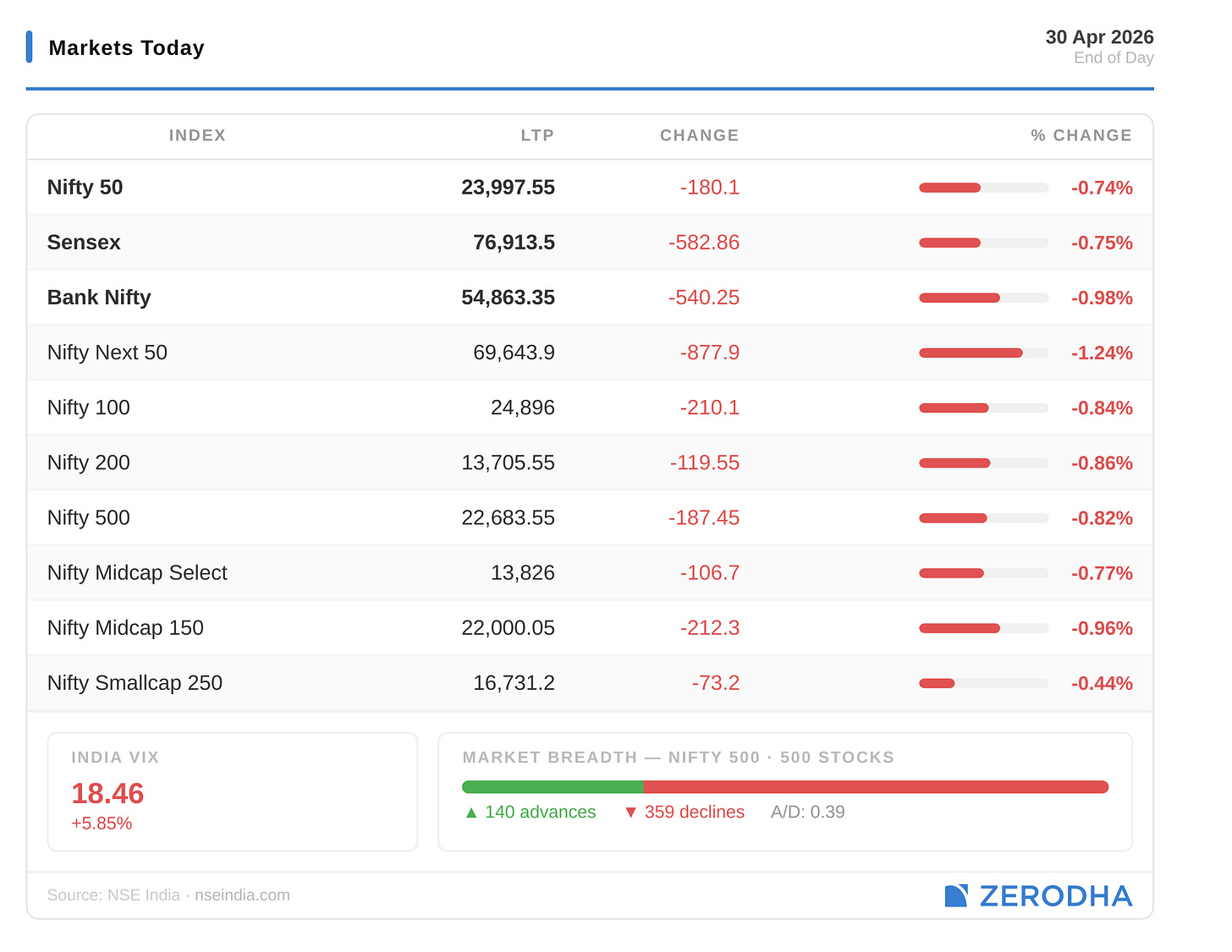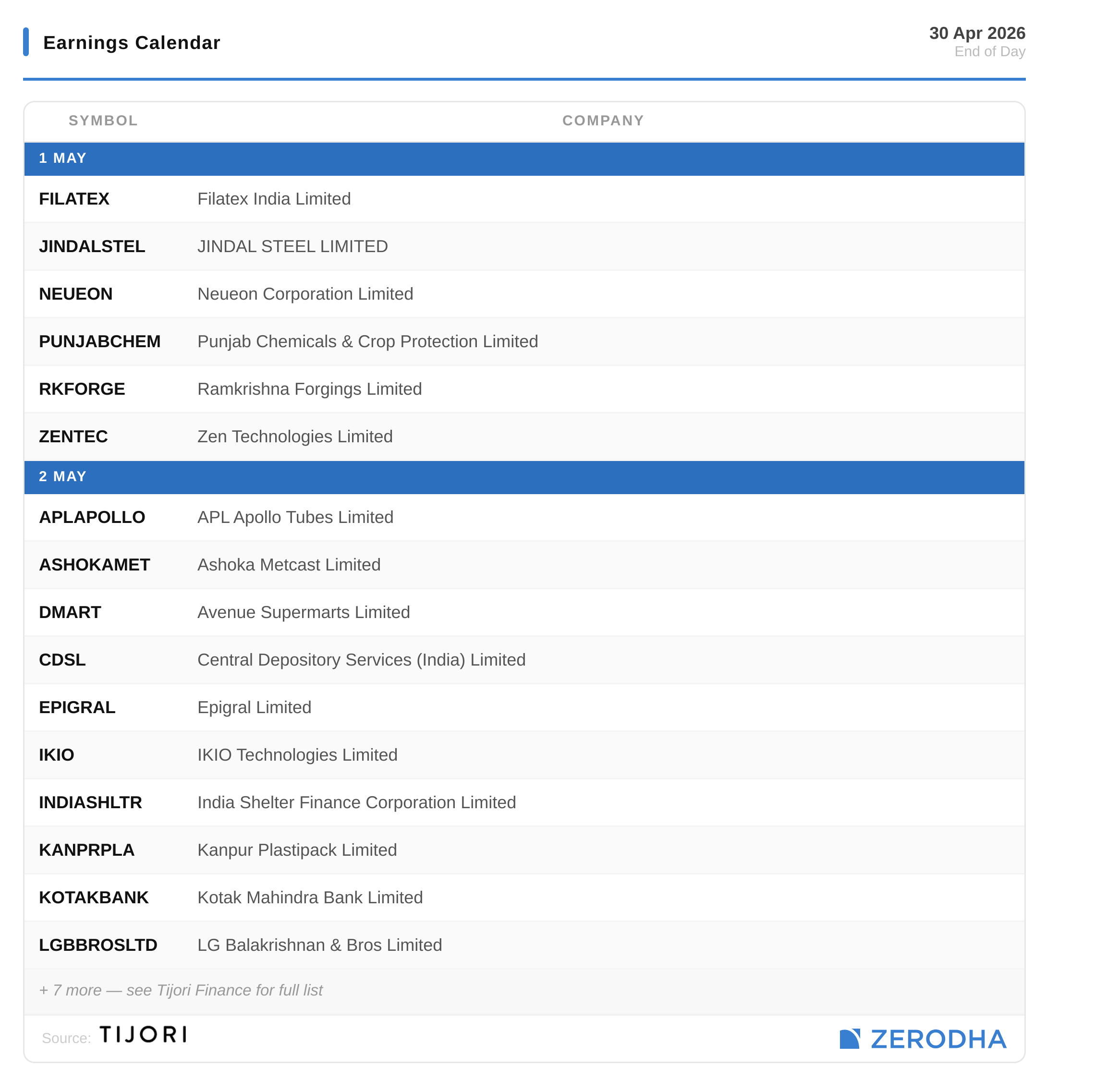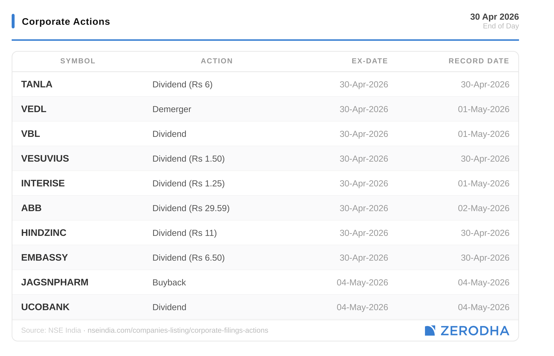 Published by Zerodha. Not investment advice. Data from NSE, BSE, MCX.