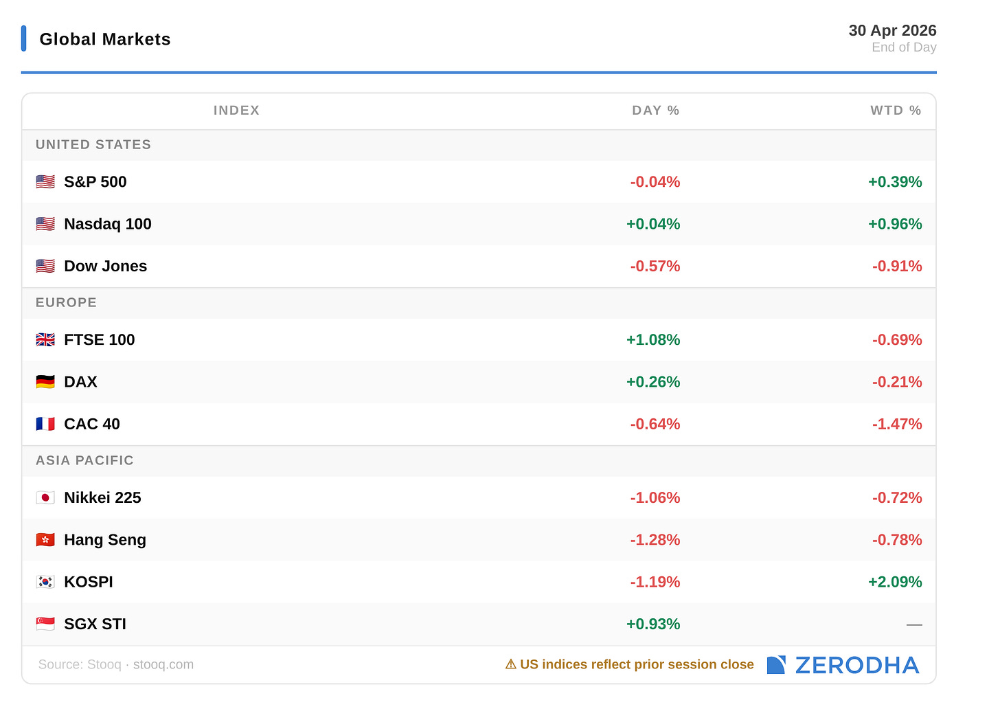 Welcome to Aftermarket Report, a newsletter where we do a quick daily wrap-up of what happened in the markets, both in India and globally.
