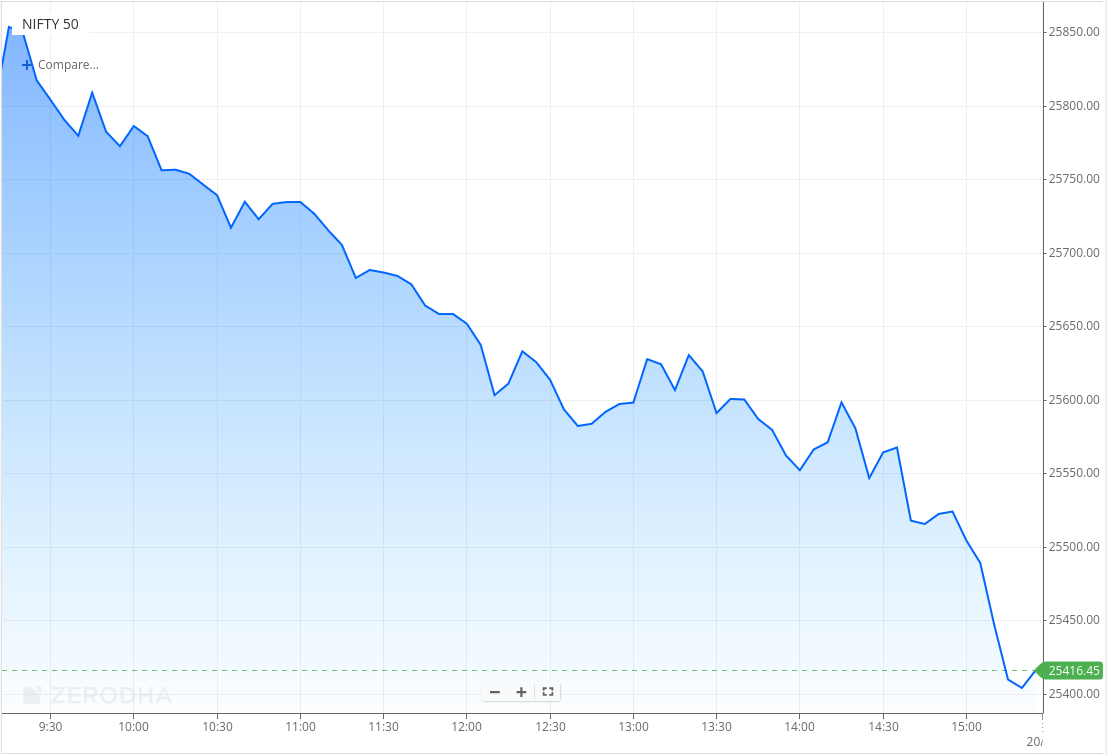Brutal one sided sell-off takes Nifty to 25,400 levels