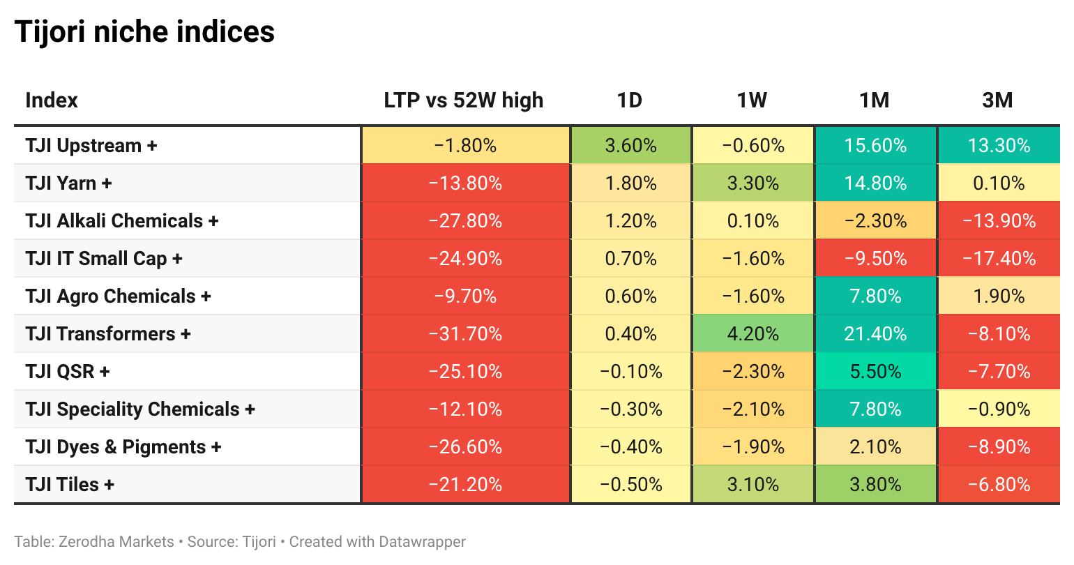 Tijori is an investment research platform that has constructed niche indices for various themes and sub-sectors. They help you understand the market performance of narrow slices of the market. You can also track the Promoter buying and other interesting stuff, like Capex activity by the companies in the Tijori App’s idea dashboard