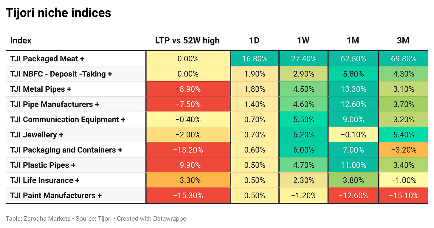 Tijori is an investment research platform that has constructed niche indices for various themes and sub-sectors. They help you understand the market performance of narrow slices of the market. You can also track the Promoter buying and other interesting stuff, like Capex activity by the companies in the Tijori App’s idea dashboard