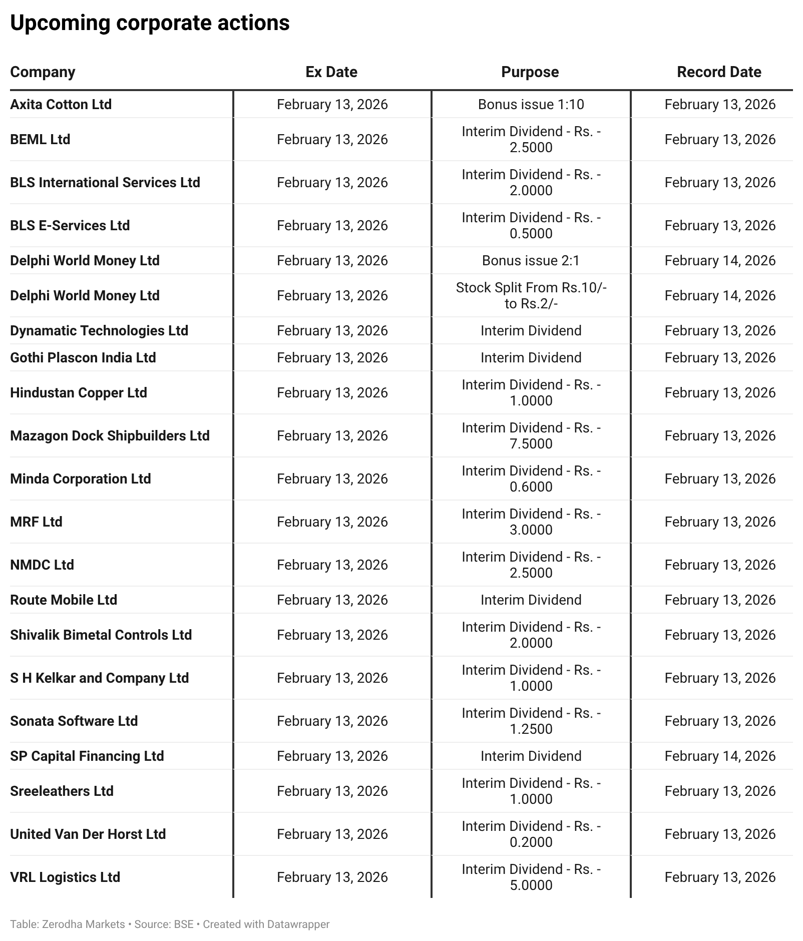 In the coming days, we have the following significant events, quarterly results, and corporate actions: