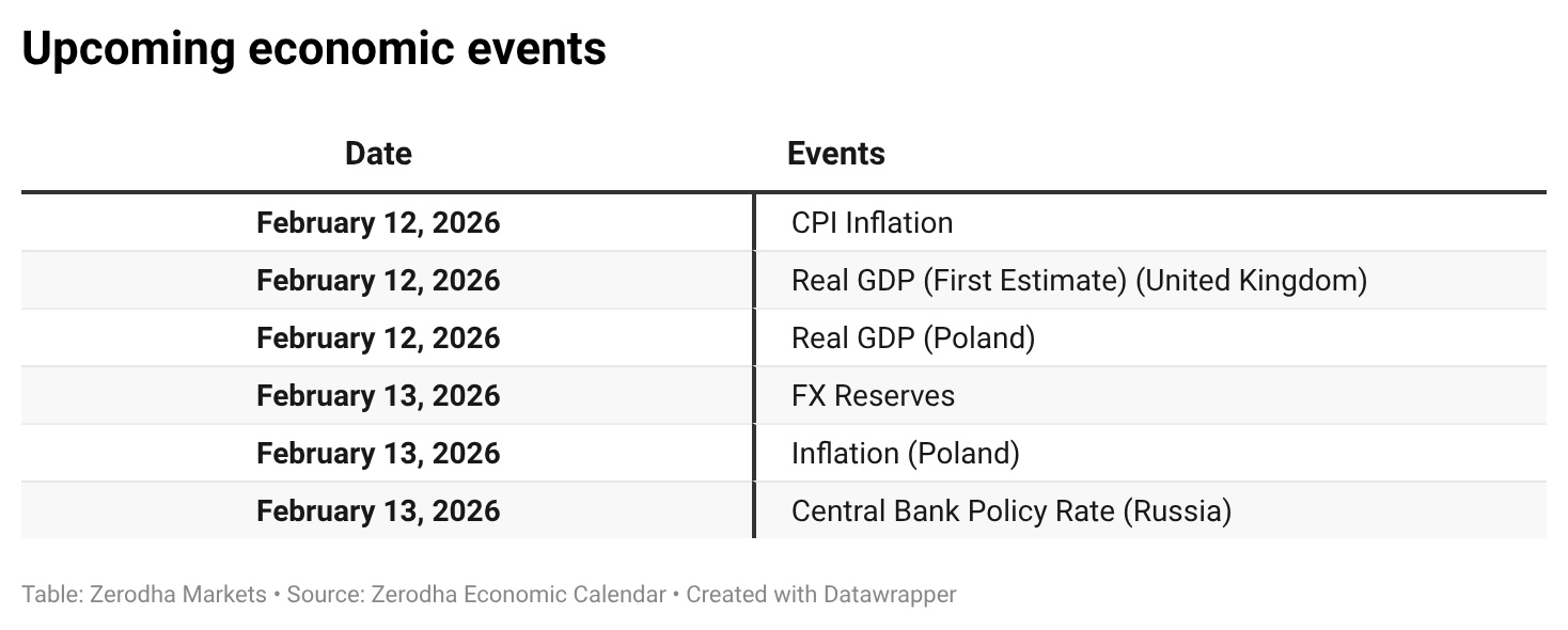 India’s 10-year G-Sec yield eased to around 6.73% as traders stayed rangebound ahead of January inflation data, with expectations of moderate price growth helping cap yields. Dive deeper