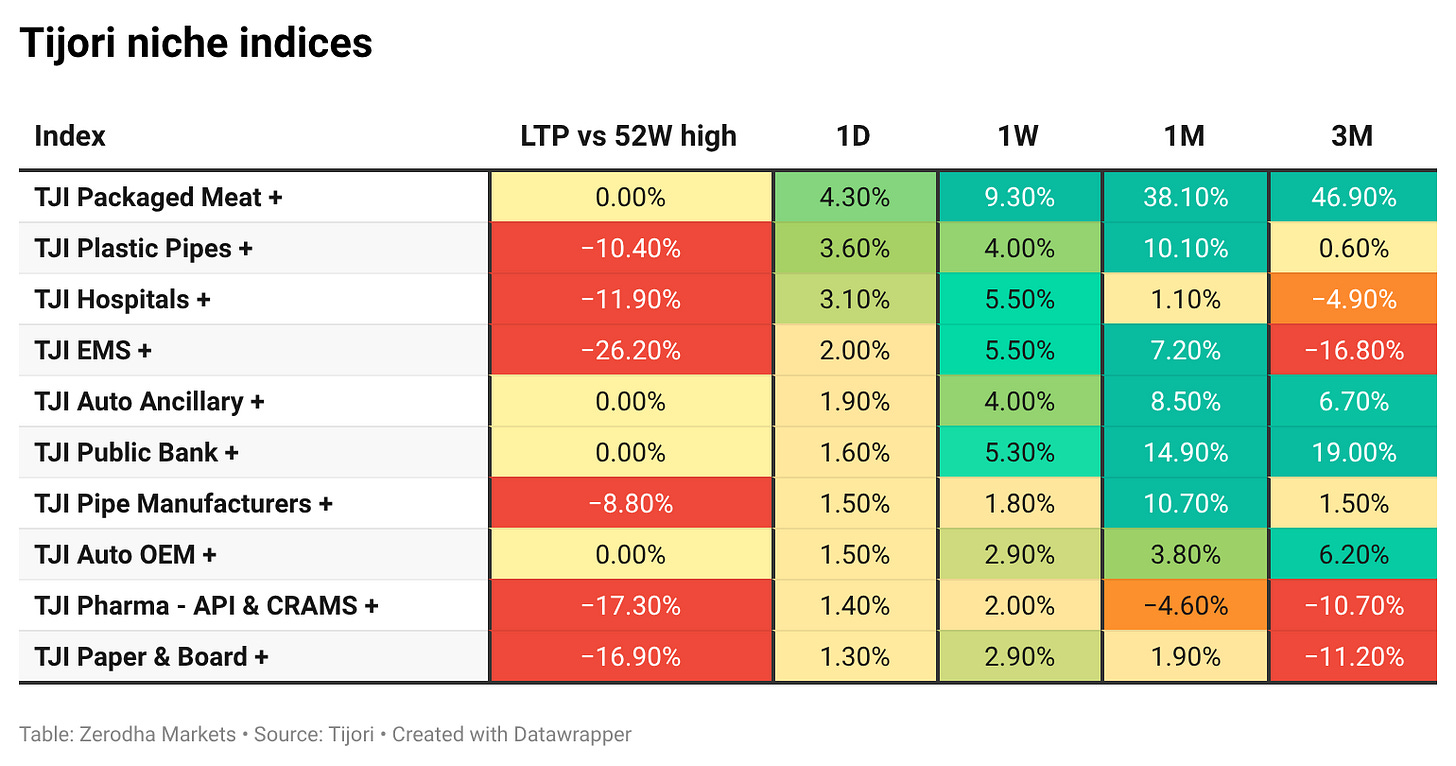 Tijori is an investment research platform that has constructed niche indices for various themes and sub-sectors. They help you understand the market performance of narrow slices of the market. You can also track the Promoter buying and other interesting stuff, like Capex activity by the companies in the Tijori App’s idea dashboard