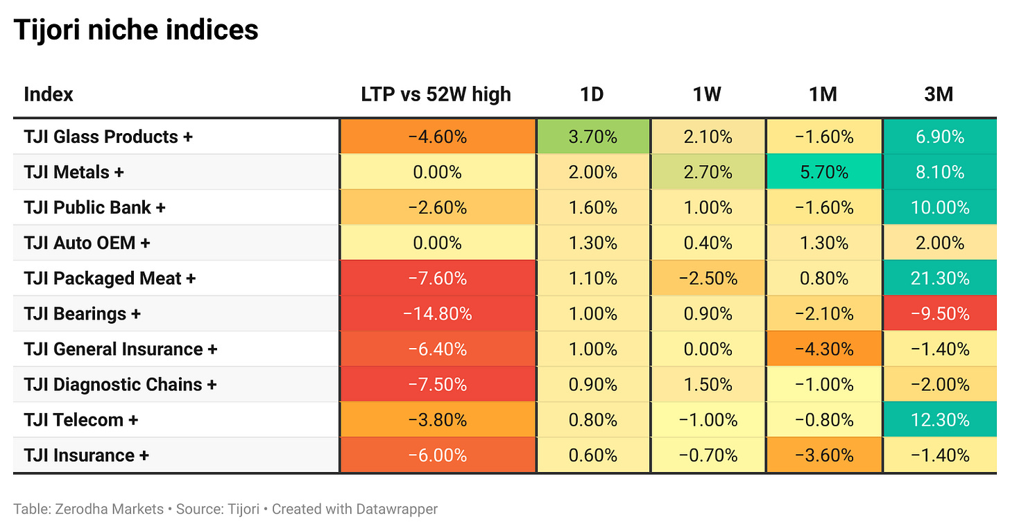 Tijori is an investment research platform that has constructed niche indices for various themes and sub-sectors. They help you understand the market performance of narrow slices of the market. You can also track the Promoter buying and other interesting stuff, like Capex activity by the companies in the Tijori App’s idea dashboard