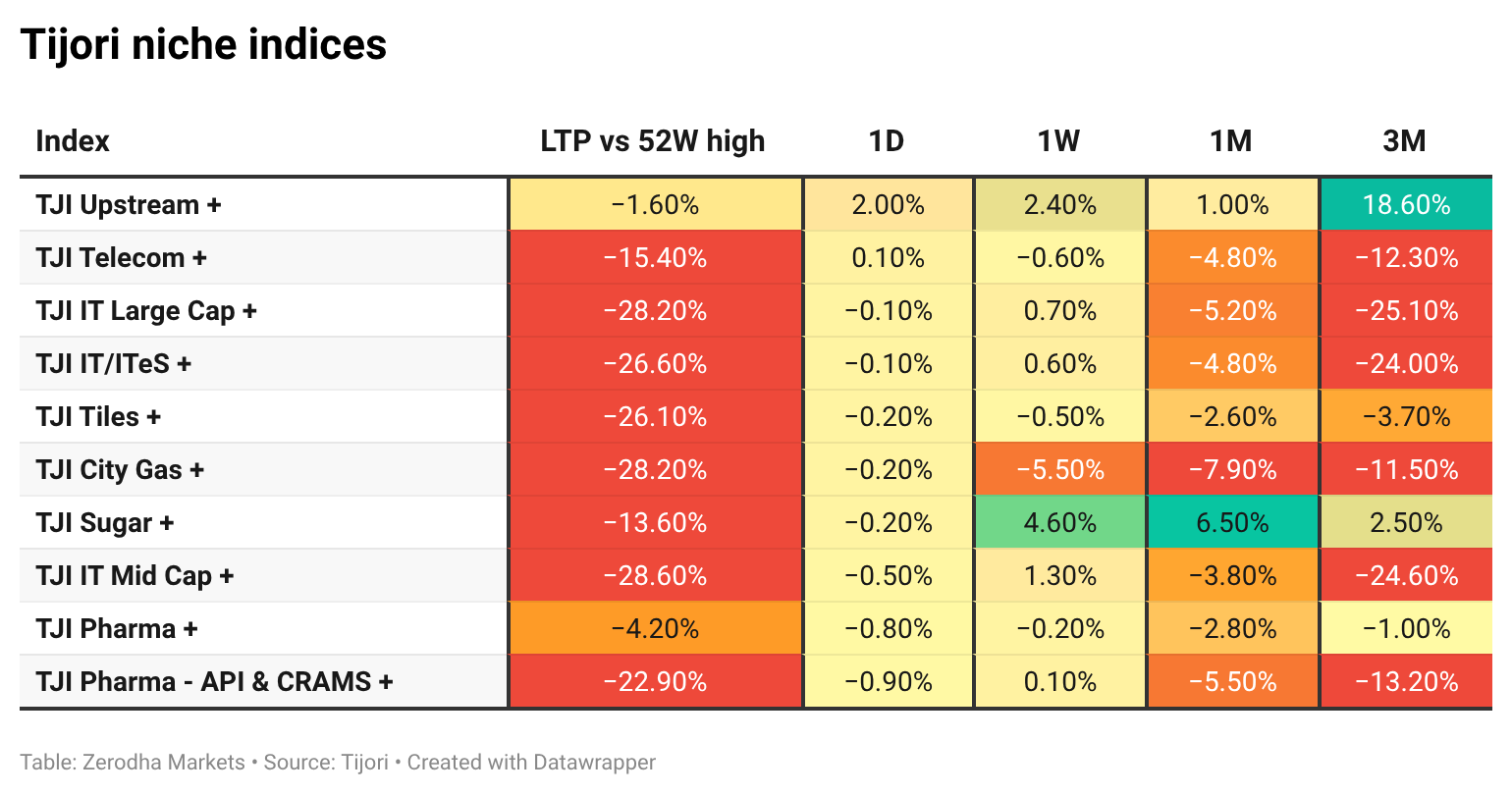 Tijori is an investment research platform that has constructed niche indices for various themes and sub-sectors. They help you understand the market performance of narrow slices of the market. You can also track the Promoter buying and other interesting stuff, like Capex activity by the companies in the Tijori App’s idea dashboard