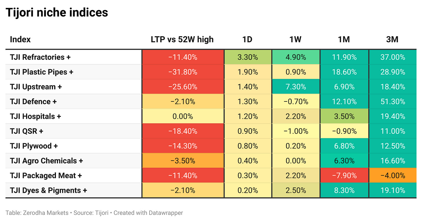 Tijori is an investment research platform, and they have constructed niche indices for various themes and sub-sectors. They help you understand the market performance of narrow slices of the market. You can also track the Promoter buying and other interesting stuff like Capex activity by the companies in the Tijori App’s idea dashboard