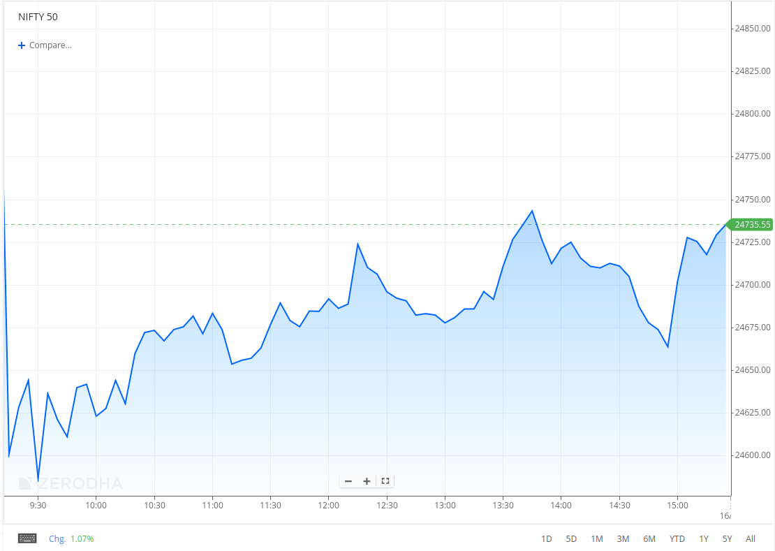 Nifty opened with a sharp 415-point drop at 24,473 after reports of an Israeli strike on Iran. It rebounded to 24,600 and moved in a narrow 50-point range early on, then gradually climbed towards 24,700. In the second half, it stayed rangebound between 24,670 and 24,750, closing at 24,718.60, down 0.68%.