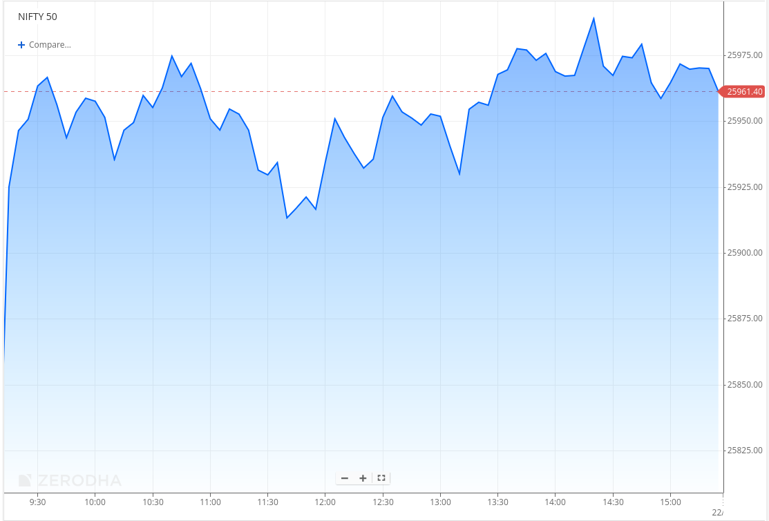 Global cues lift Nifty above 25,950 as broader markets stabilize
