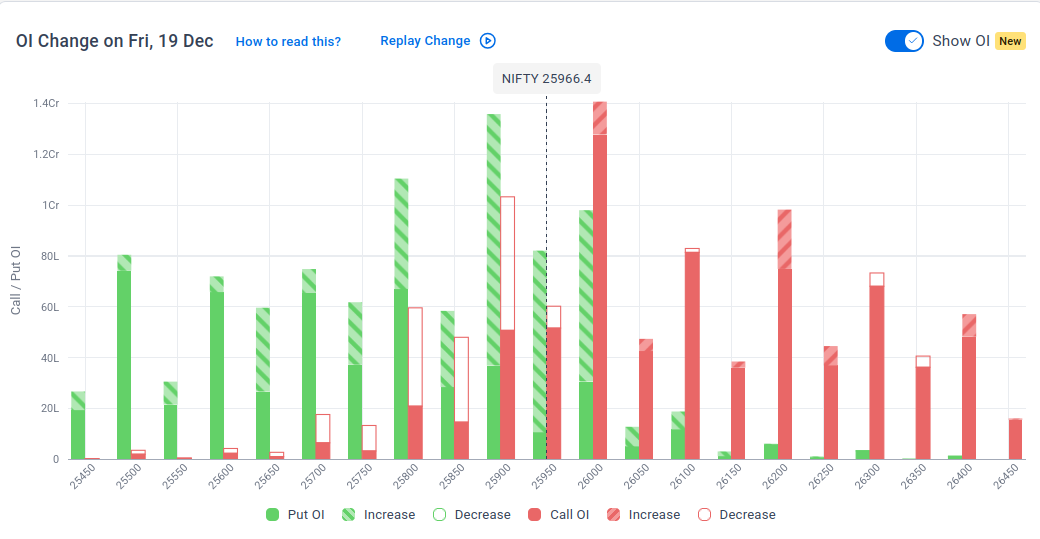 The maximum Put Open Interest (OI) is observed at 25,900, followed by 25,800, suggesting support at the 25,900 to 25,800 levels.