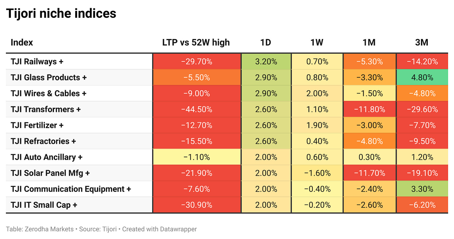Tijori is an investment research platform that has constructed niche indices for various themes and sub-sectors. They help you understand the market performance of narrow slices of the market. You can also track the Promoter buying and other interesting stuff, like Capex activity by the companies in the Tijori App’s idea dashboard
