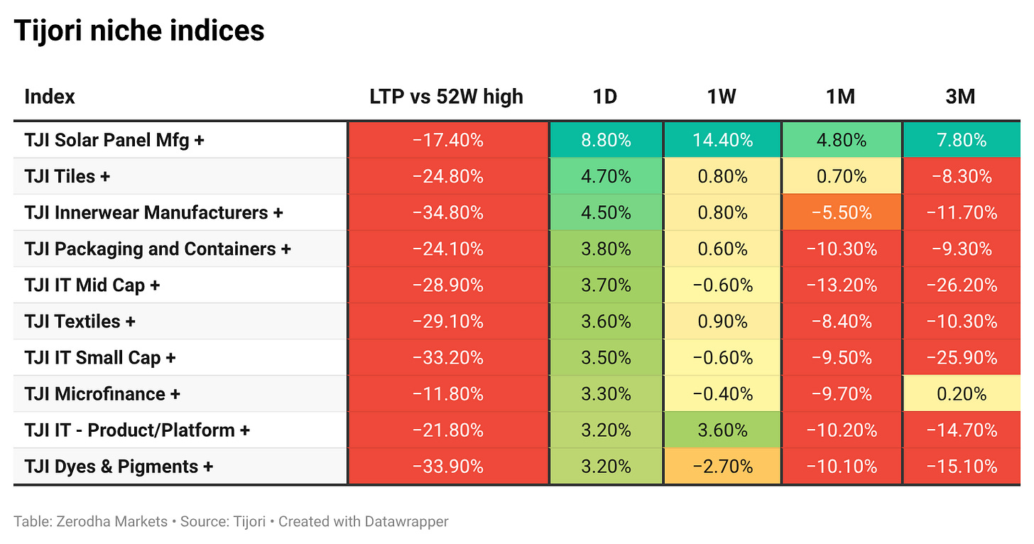 Tijori is an investment research platform that has constructed niche indices for various themes and sub-sectors. They help you understand the market performance of narrow slices of the market. You can also track the Promoter buying and other interesting stuff, like Capex activity by the companies in the Tijori App’s idea dashboard