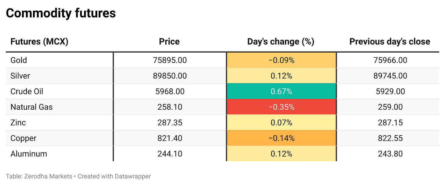 Note: The above numbers for Commodity futures were taken around 4 pm.