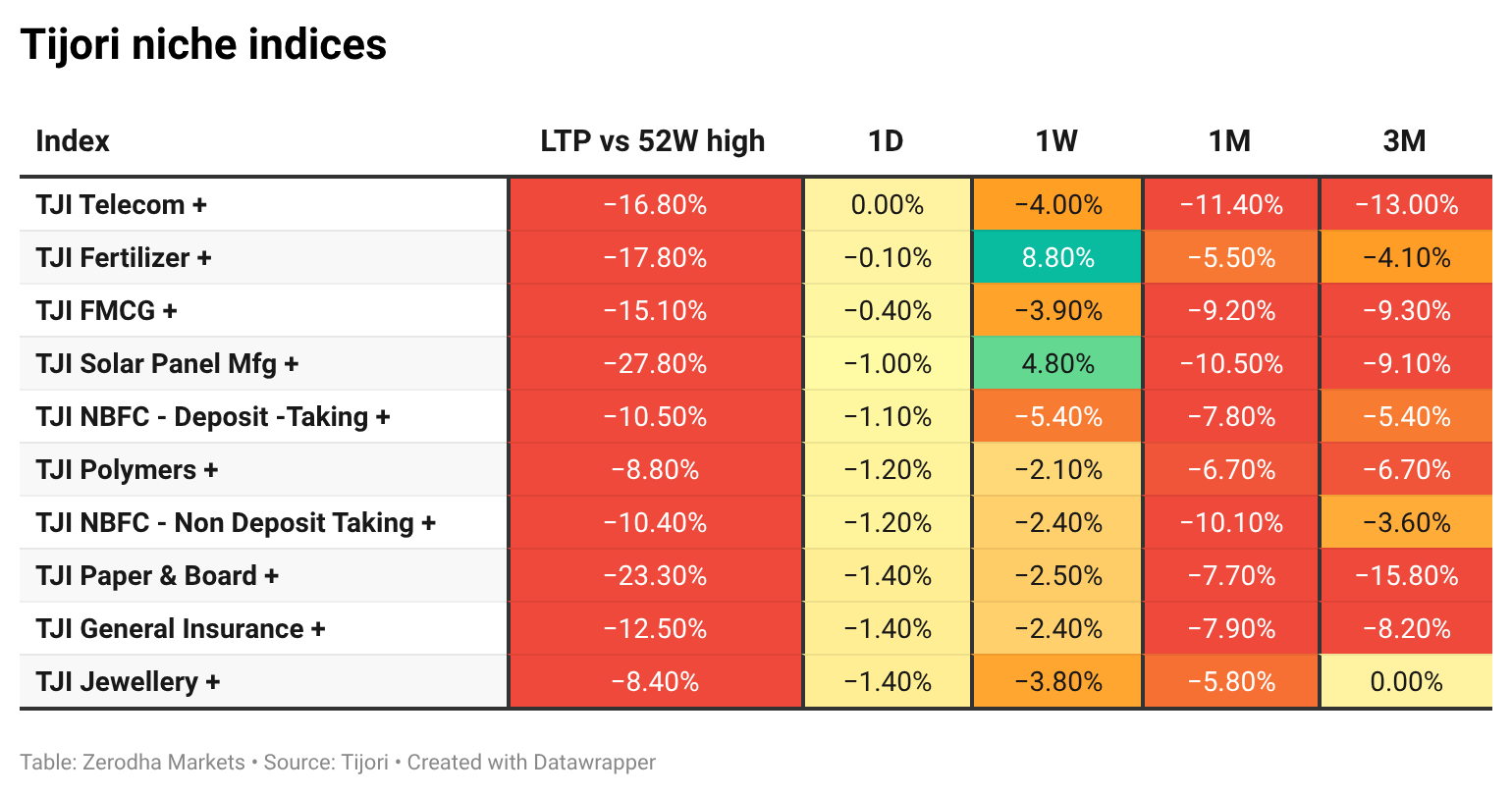 Tijori is an investment research platform that has constructed niche indices for various themes and sub-sectors. They help you understand the market performance of narrow slices of the market. You can also track the Promoter buying and other interesting stuff, like Capex activity by the companies in the Tijori App’s idea dashboard