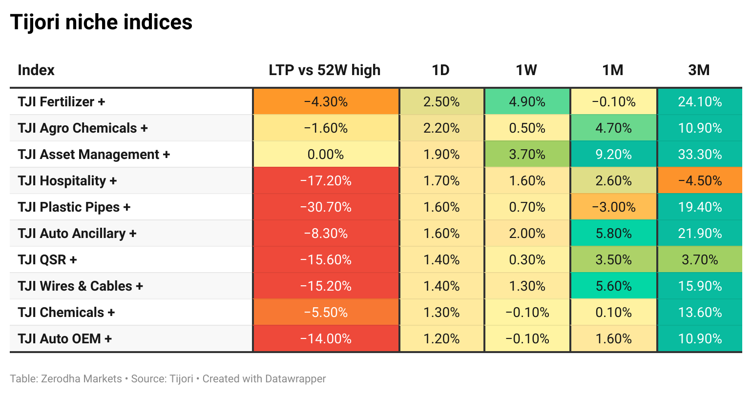 Tijori is an investment research platform, and they have constructed niche indices for various themes and sub-sectors. They help you understand the market performance of narrow slices of the market. You can also track the Promoter buying and other interesting stuff like Capex activity by the companies in the Tijori App’s idea dashboard.
