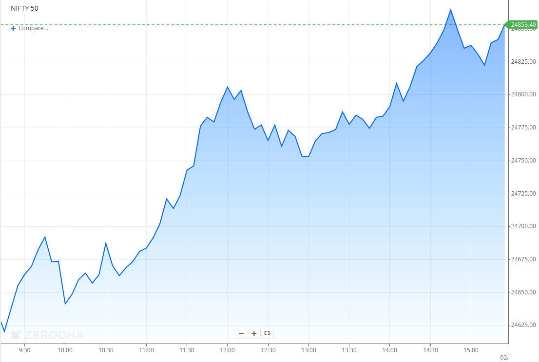 Markets cheer RBI policy as Nifty climbs past 24,800 to close strong