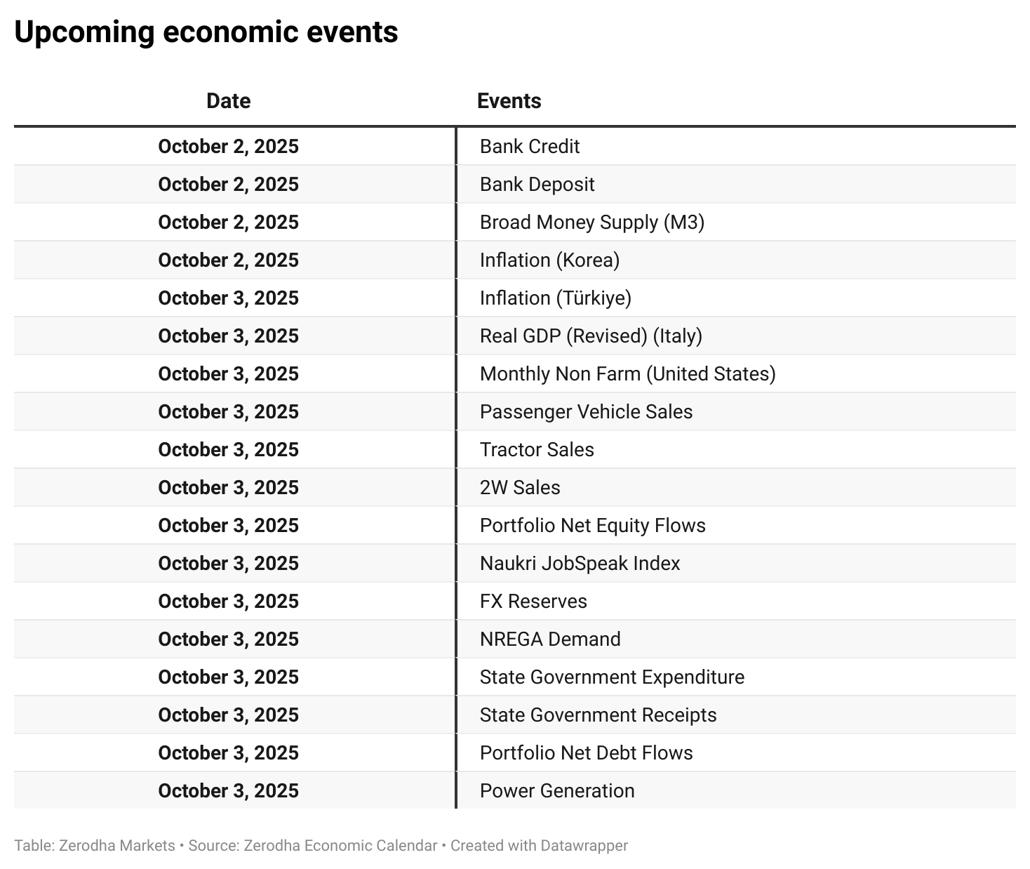 Market sentiment has once again turned cautious after tariffs on Pharma and a hike in H1-B visa fees affecting the IT sector. As we advance, investors will closely track festival season sales and management commentary on demand trends across industries.