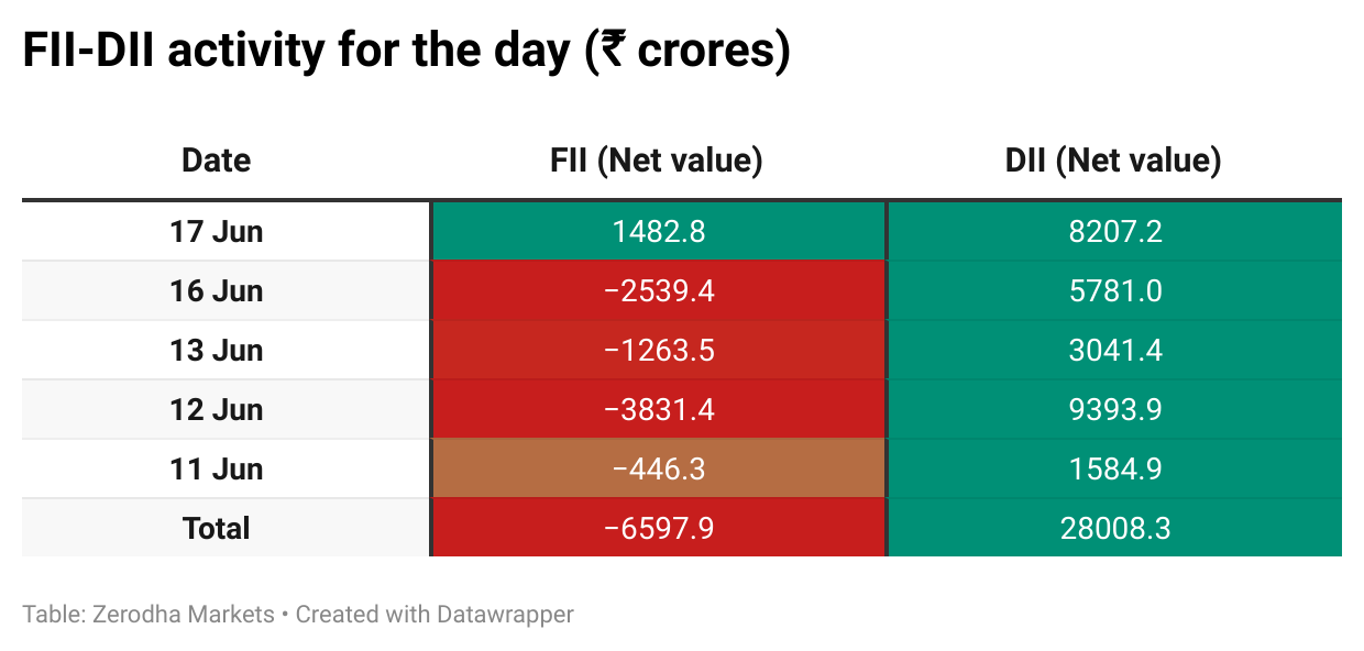 Note: The above numbers for Commodity futures were taken around 5 pm. Here’s the trend of FII-DII activity from the last 5 days: