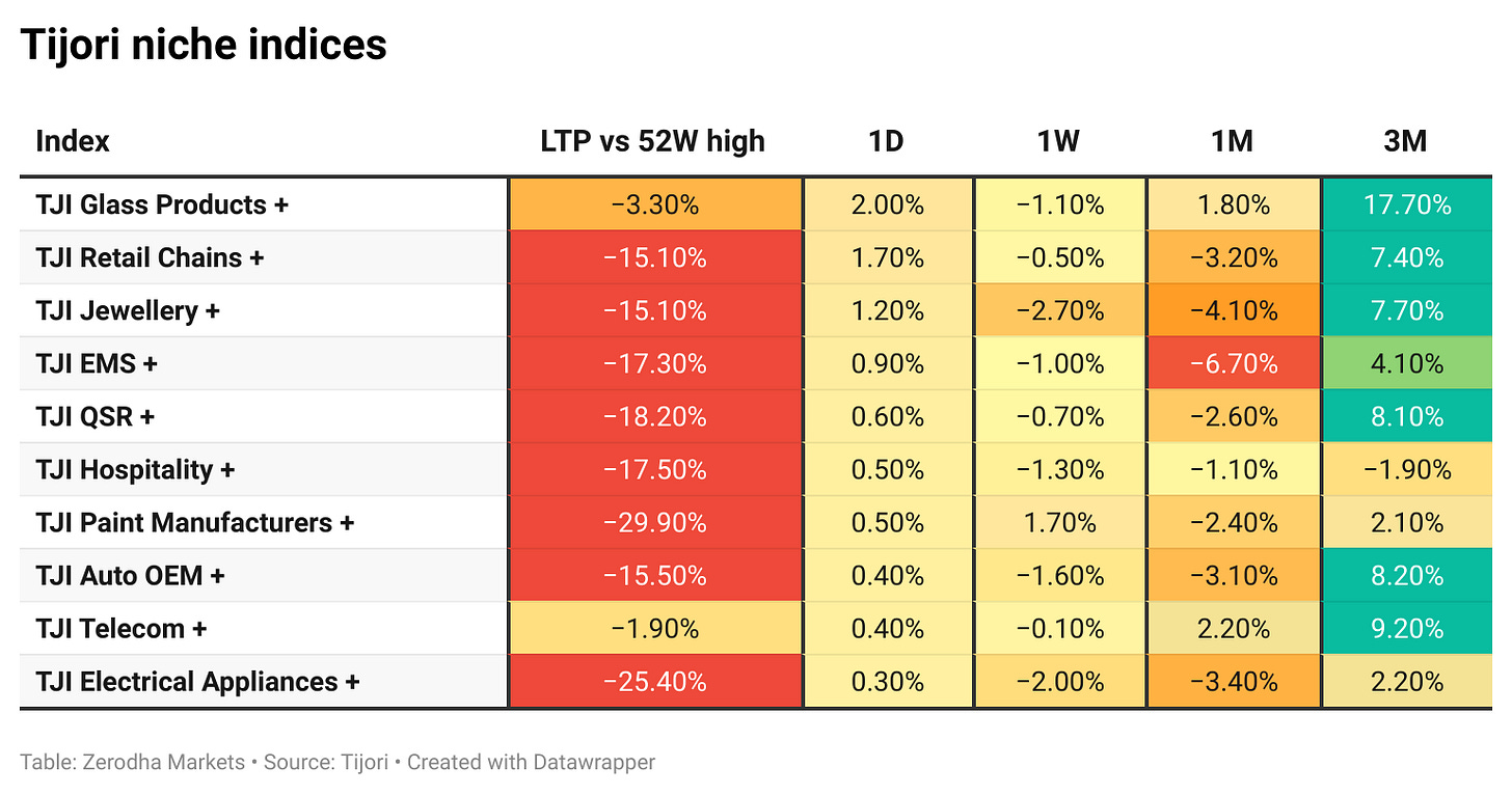 Tijori is an investment research platform, and they have constructed niche indices for various themes and sub-sectors. They help you understand the market performance of narrow slices of the market. You can also track the Promoter buying and other interesting stuff like Capex activity by the companies in the Tijori App’s idea dashboard