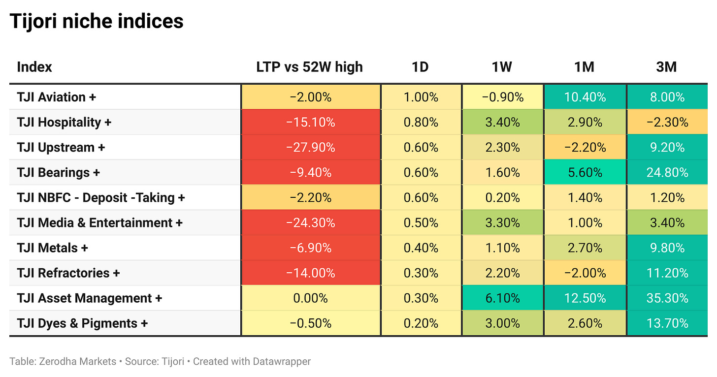 Tijori is an investment research platform, and they have constructed niche indices for various themes and sub-sectors. They help you understand the market performance of narrow slices of the market. You can also track the Promoter buying and other interesting stuff like Capex activity by the companies in the Tijori App’s idea dashboard.