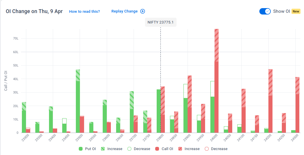 Note: OI is subject to multiple interpretations; however, generally, an increase in Call OI indicates resistance in a falling market, while an increase in Put OI indicates support in a rising market.