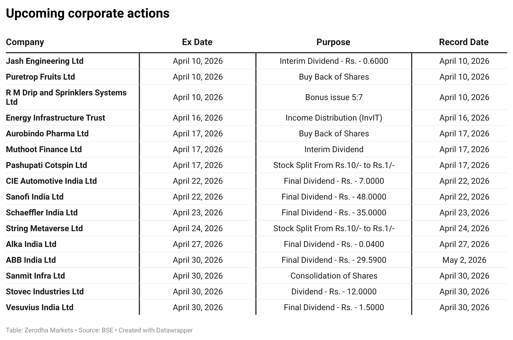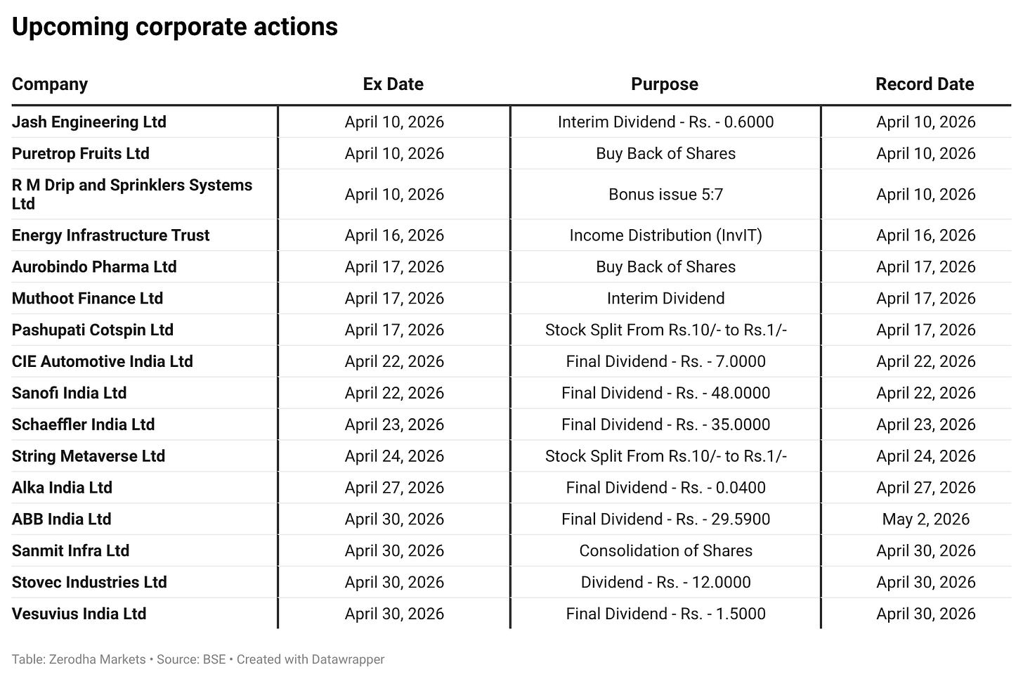In the coming days, we have the following significant events and corporate actions: