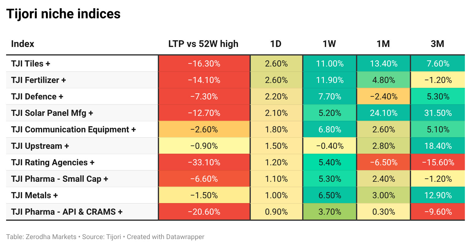 Tijori is an investment research platform that has constructed niche indices for various themes and sub-sectors. They help you understand the market performance of narrow slices of the market. You can also track the Promoter buying and other interesting stuff, like Capex activity by the companies in the Tijori App’s idea dashboard