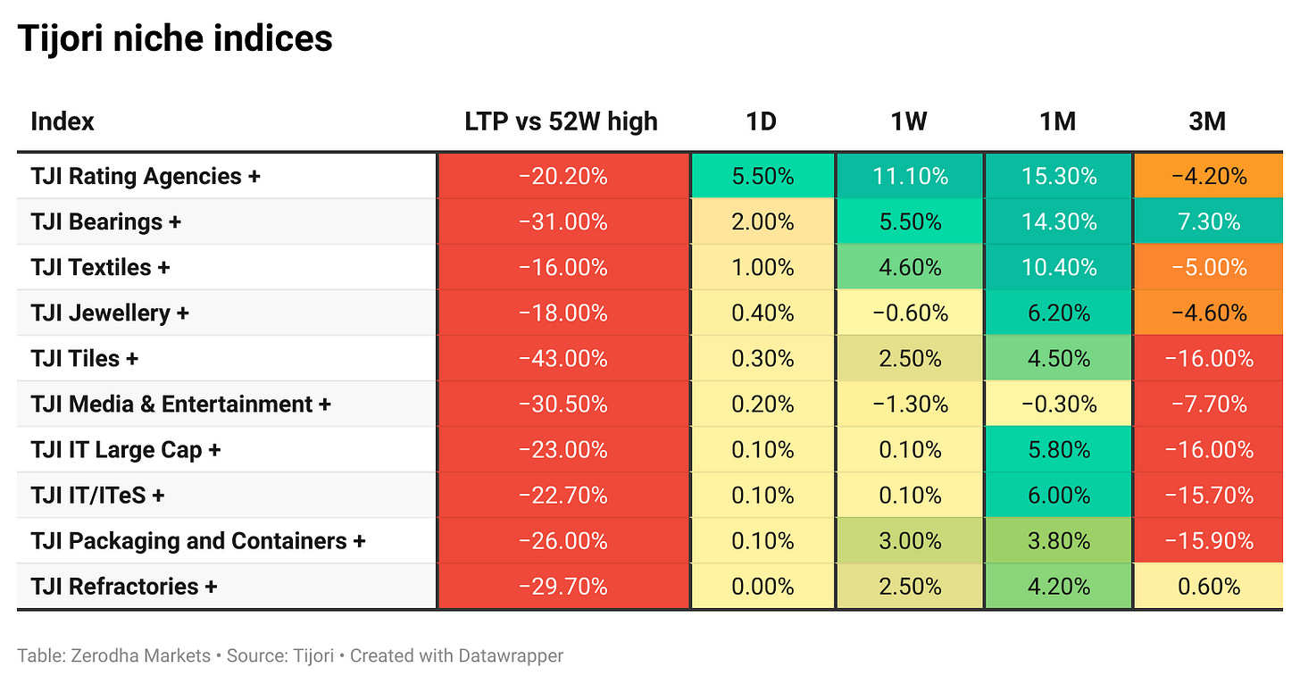 Tijori is an investment research platform, and they have constructed niche indices for various themes and sub-sectors. They help you understand the market performance of narrow slices of the market. You can also track the Promoter buying and other interesting stuff like Capex activity by the companies in the Tijori App’s idea dashboard