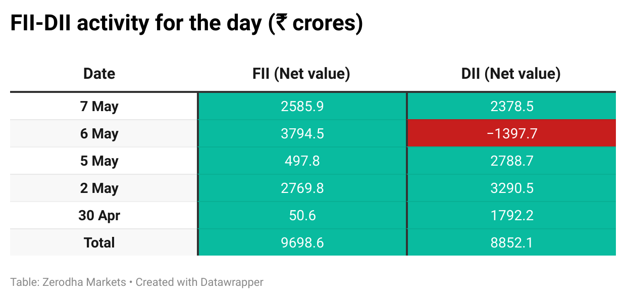 Note: The above numbers for Commodity futures were taken around 5 pm. Here’s the trend of FII-DII activity from the last 5 days: