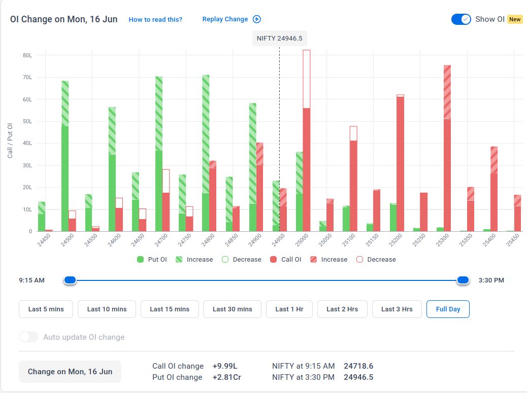 The maximum Put Open Interest (OI) is observed at 24,800, followed closely by 24,700, suggesting strong support at 24,600 to 24,500 levels.