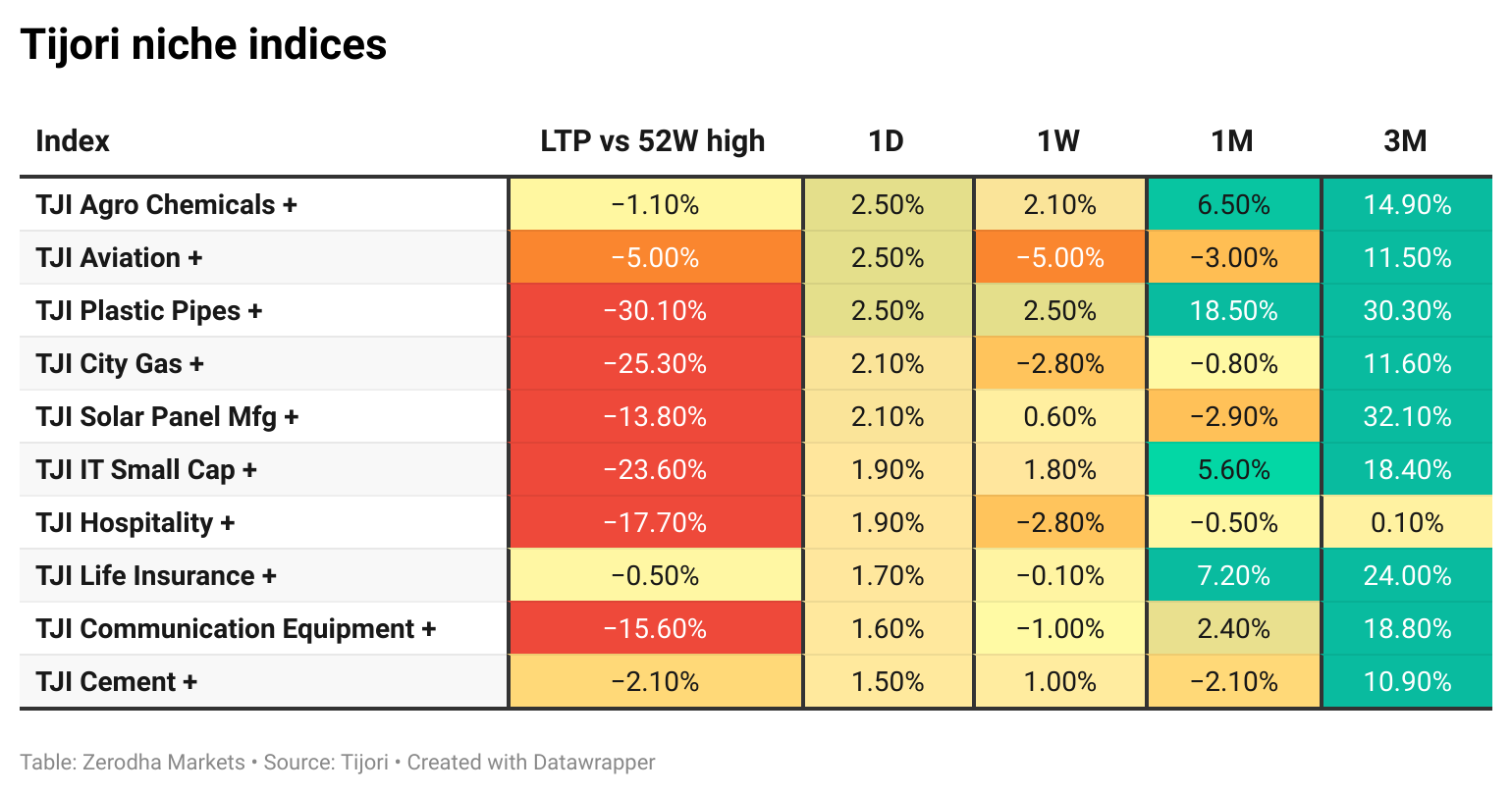 Tijori is an investment research platform, and they have constructed niche indices for various themes and sub-sectors. They help you understand the market performance of narrow slices of the market. You can also track the Promoter buying and other interesting stuff like Capex activity by the companies in the Tijori App’s idea dashboard