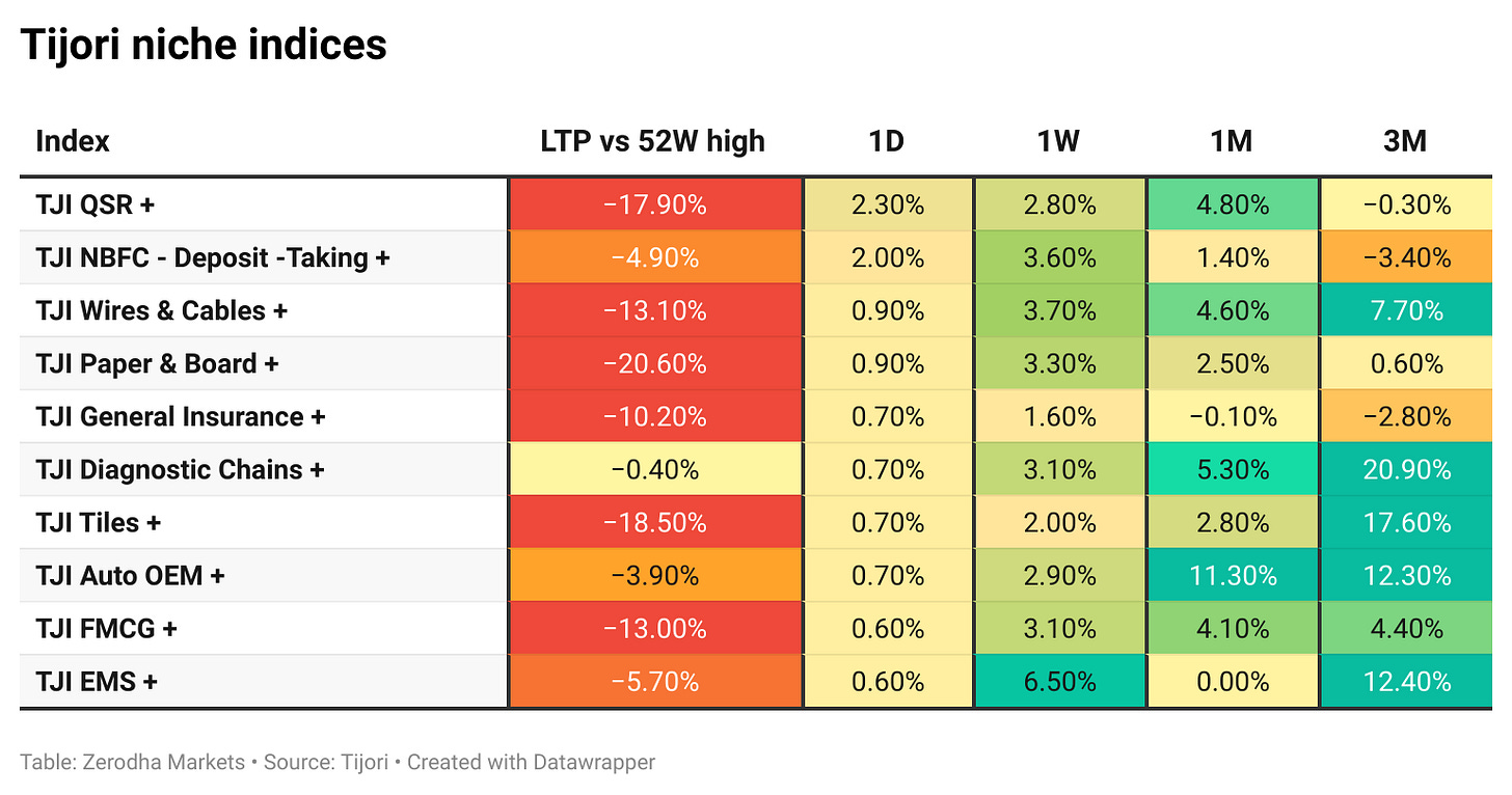 Tijori is an investment research platform, and they have constructed niche indices for various themes and sub-sectors. They help you understand the market performance of narrow slices of the market. You can also track the Promoter buying and other interesting stuff like Capex activity by the companies in the Tijori App’s idea dashboard