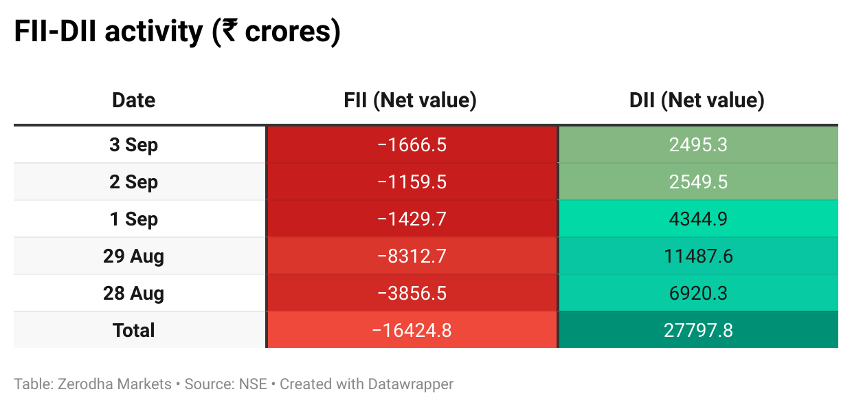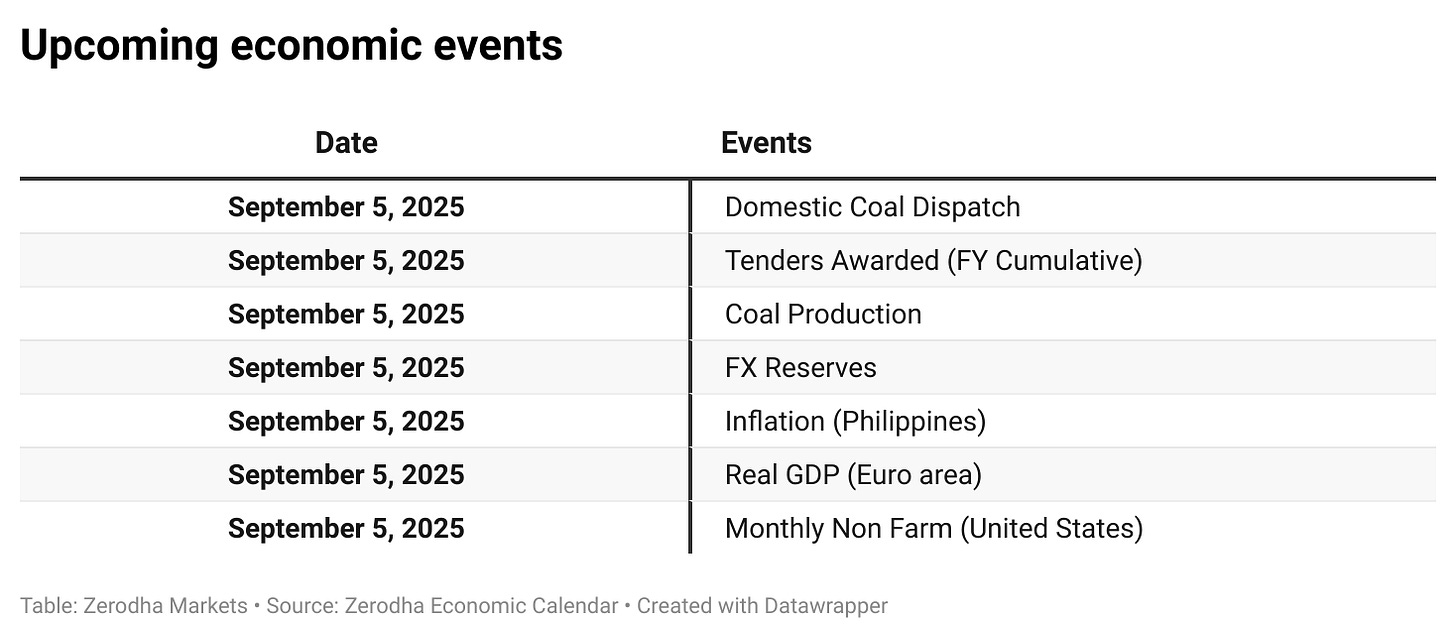 Market sentiment remains cautious, with concerns over 50% tariffs, persistent foreign investor outflows, and muted earnings weighing on confidence. Escalating U.S.-India trade tensions are expected to remain the key driver of near-term market direction.