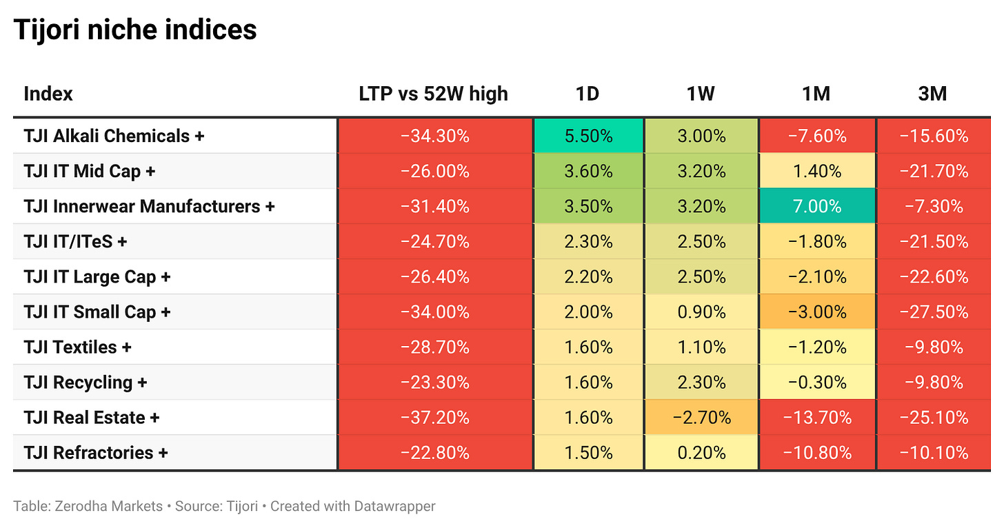Tijori is an investment research platform that has constructed niche indices for various themes and sub-sectors. They help you understand the market performance of narrow slices of the market. You can also track the Promoter buying and other interesting stuff, like Capex activity by the companies in the Tijori App’s idea dashboard