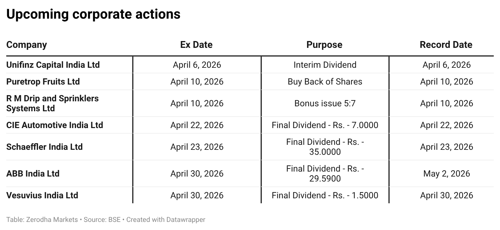 In the coming days, we have the following significant events and corporate actions: