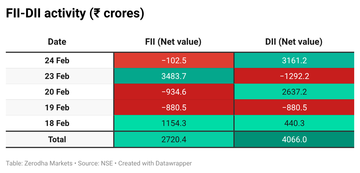 Here’s the trend of FII-DII activity from the last 5 days: