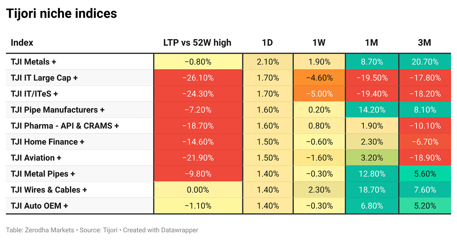 Tijori is an investment research platform that has constructed niche indices for various themes and sub-sectors. They help you understand the market performance of narrow slices of the market. You can also track the Promoter buying and other interesting stuff, like Capex activity by the companies in the Tijori App’s idea dashboard