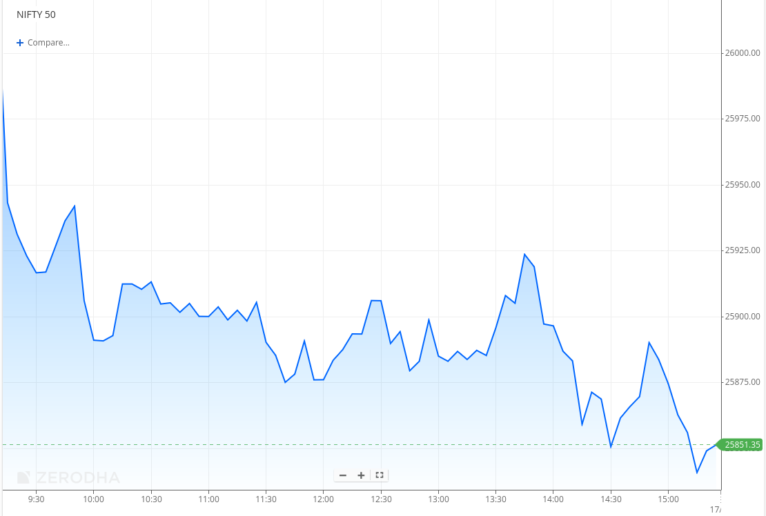 Nifty and broader markets slide; Rupee weakness weighs as Index closes near 25,850