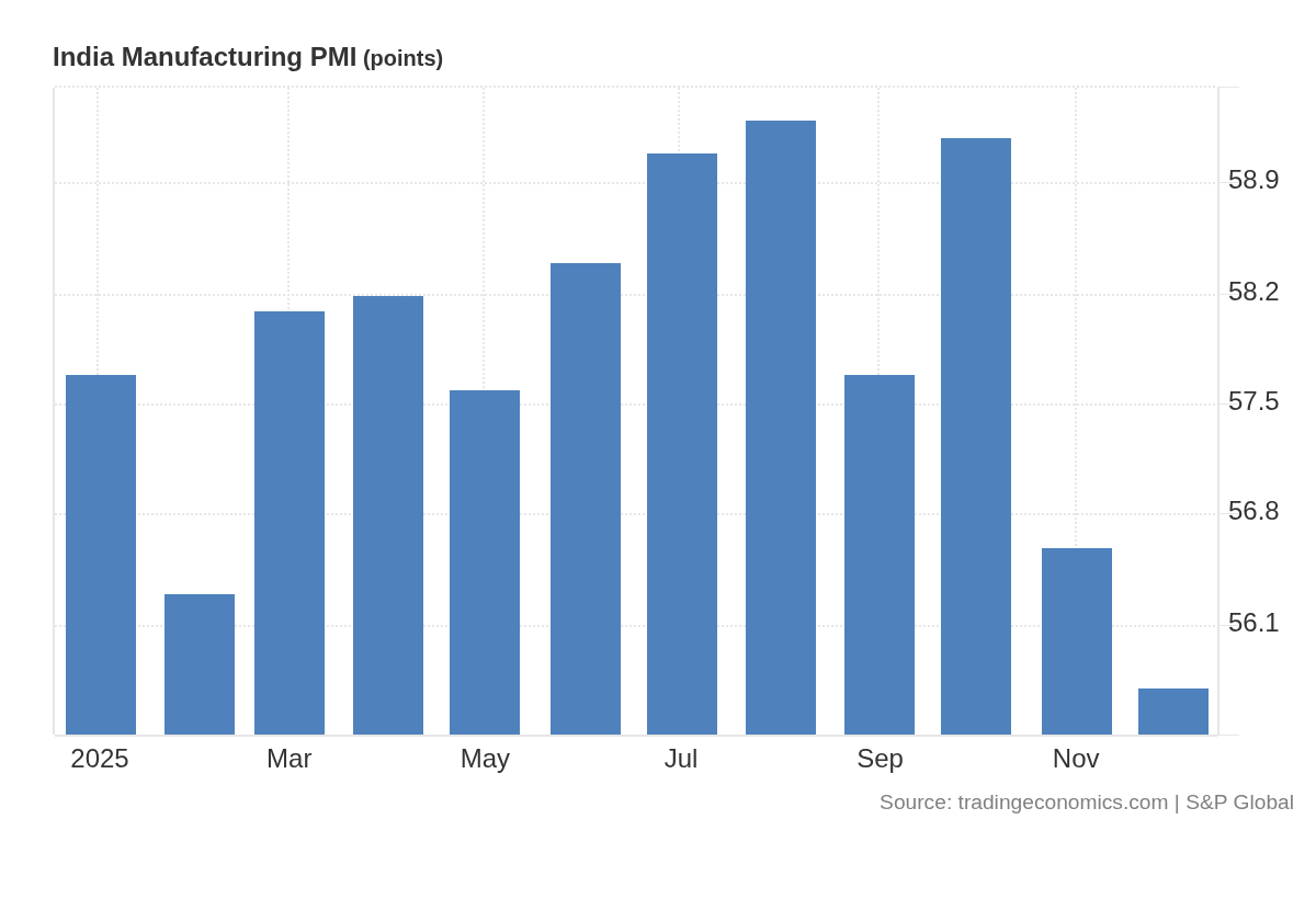 India’s manufacturing growth cooled in December, with the PMI at a one-year low as new orders and output growth softened, reflecting tariff-related pressure on labour-intensive sectors. Dive deeper