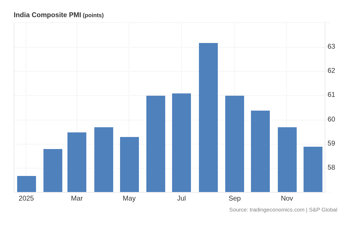 HSBC India’s Composite PMI slipped to 58.9 in December, the lowest since February, as growth in manufacturing and services softened. Price pressures stayed muted, and confidence remained positive, though optimism eased to its weakest level since July 2022. Dive deeper