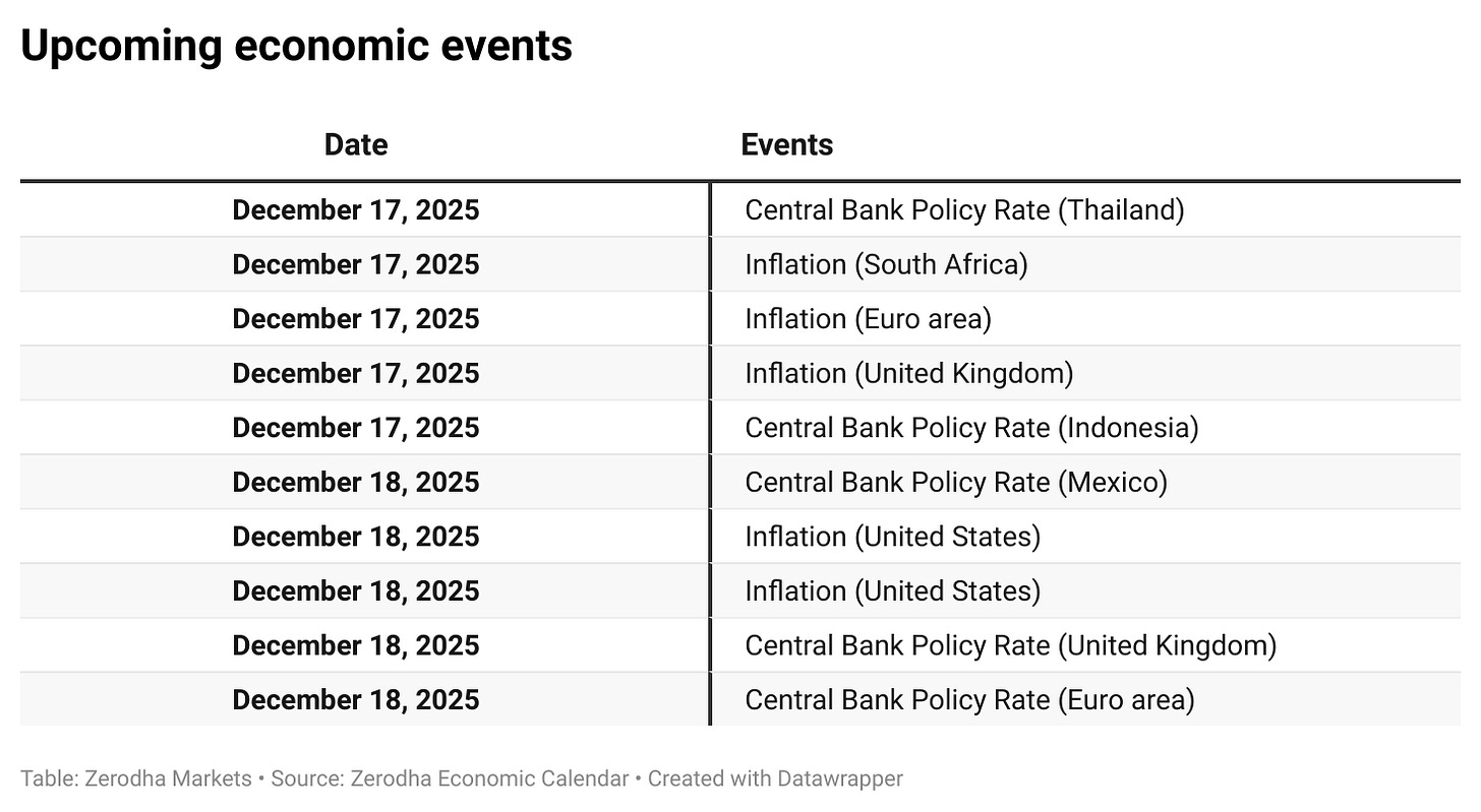 In our latest episode of In The Money by Zerodha video series, we explore Week 50 of 2025, a volatile yet largely directionless stretch for markets, marked by sharp early-week moves followed by a late recovery. A delayed reaction to the US Fed’s 25 bps rate cut kept traders on edge, while Indian indices continued to hover near all-time highs, struggling to commit to a clear directional trend with just two weeks left in the year.