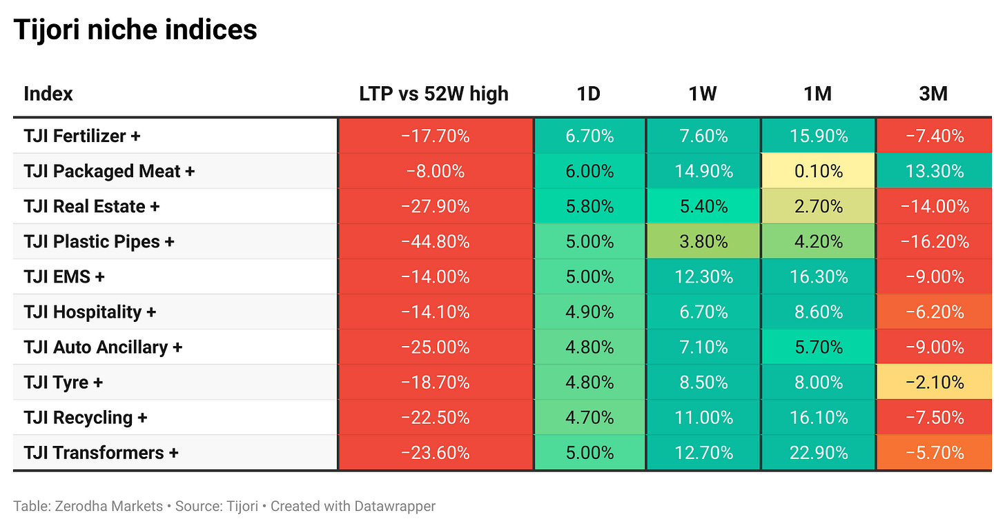 Tijori is an investment research platform, and they have constructed niche indices for various themes and sub-sectors. They help you understand the market performance of narrow slices of the market. You can also track the Promoter buying and other interesting stuff like Capex activity by the companies in the Tijori App’s idea dashboard.
