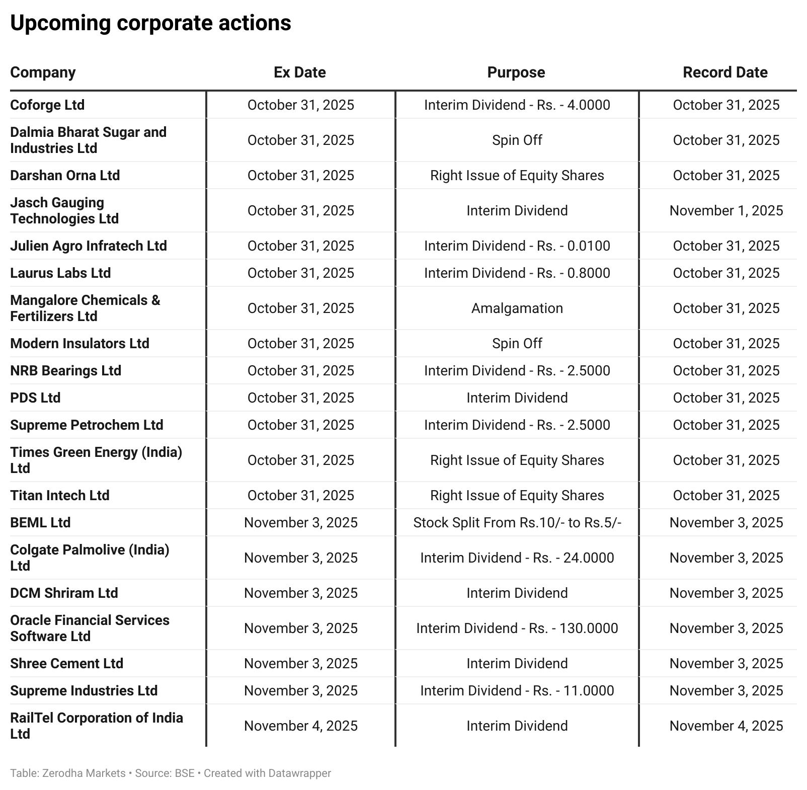 In the coming days, we have the following quarterly results, significant events, and corporate actions: