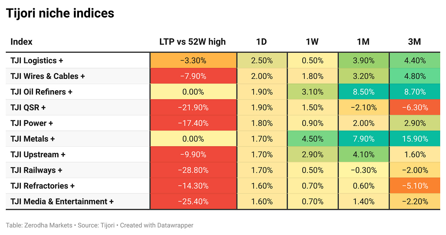 Tijori is an investment research platform, and they have constructed niche indices for various themes and sub-sectors. They help you understand the market performance of narrow slices of the market. You can also track the Promoter buying and other interesting stuff, like Capex activity by the companies in the Tijori App’s idea dashboard