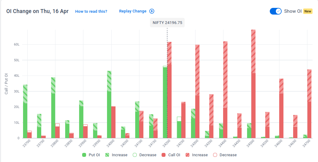 The maximum Put Open Interest (OI) is observed at 24,200, followed by 24,000 & 23,800, suggesting support at 24,000-23,900.