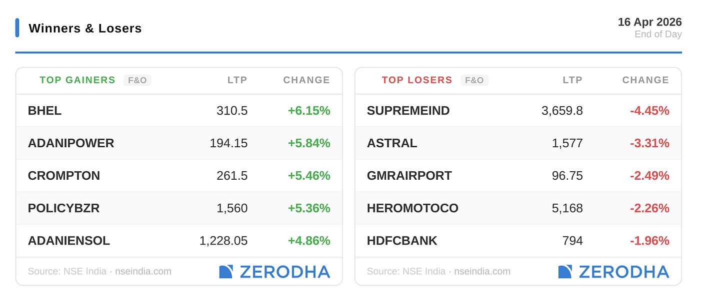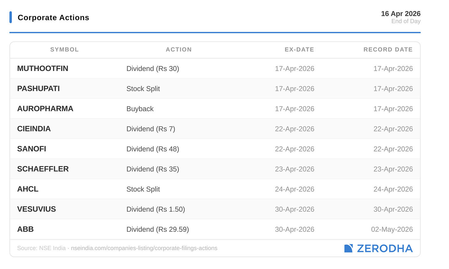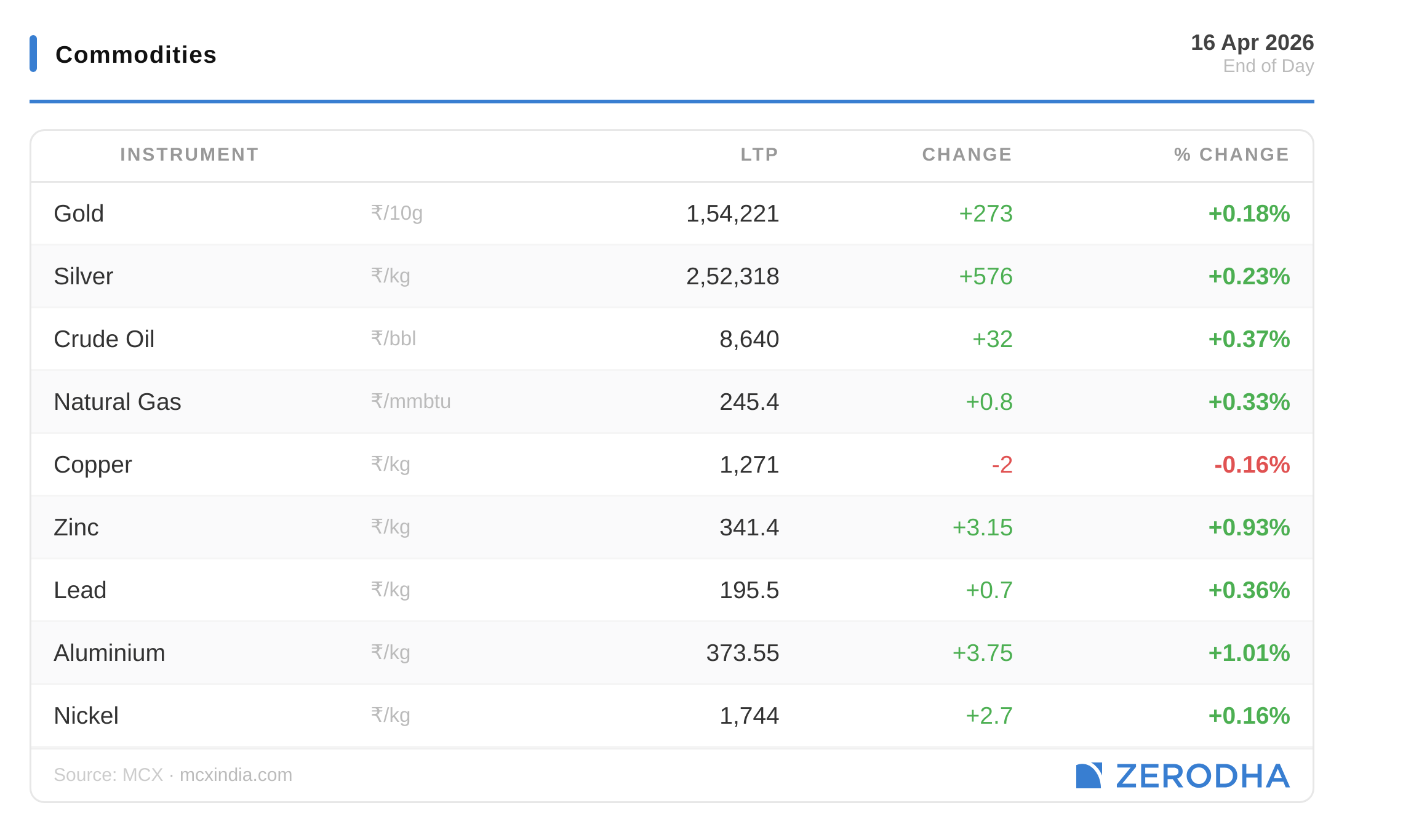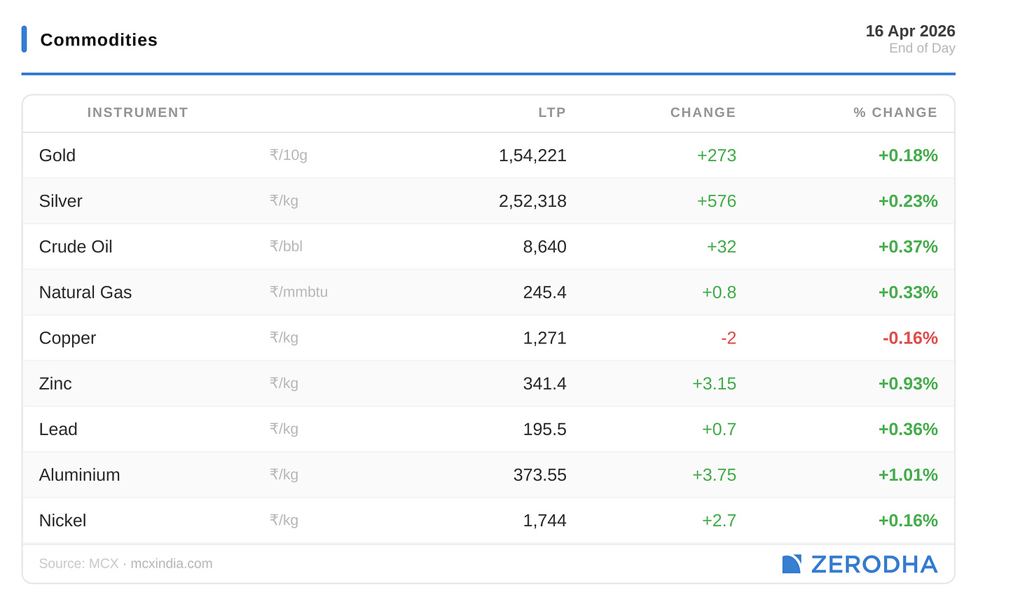Published by Zerodha. Not investment advice. Data from NSE, BSE, MCX.