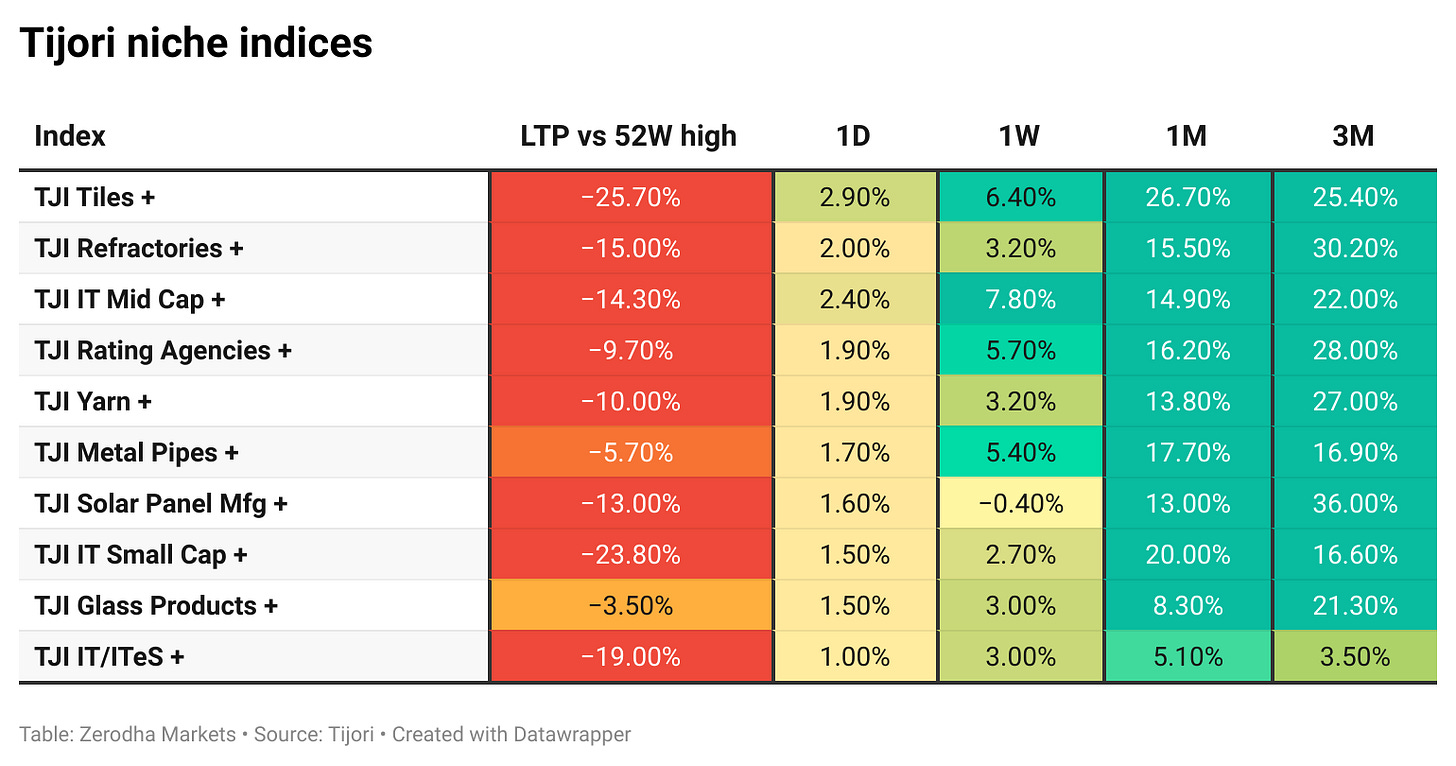 Tijori is an investment research platform, and they have constructed niche indices for various themes and sub-sectors. They help you understand the market performance of narrow slices of the market. You can also track the Promoter buying and other interesting stuff like Capex activity by the companies in the Tijori App’s idea dashboard