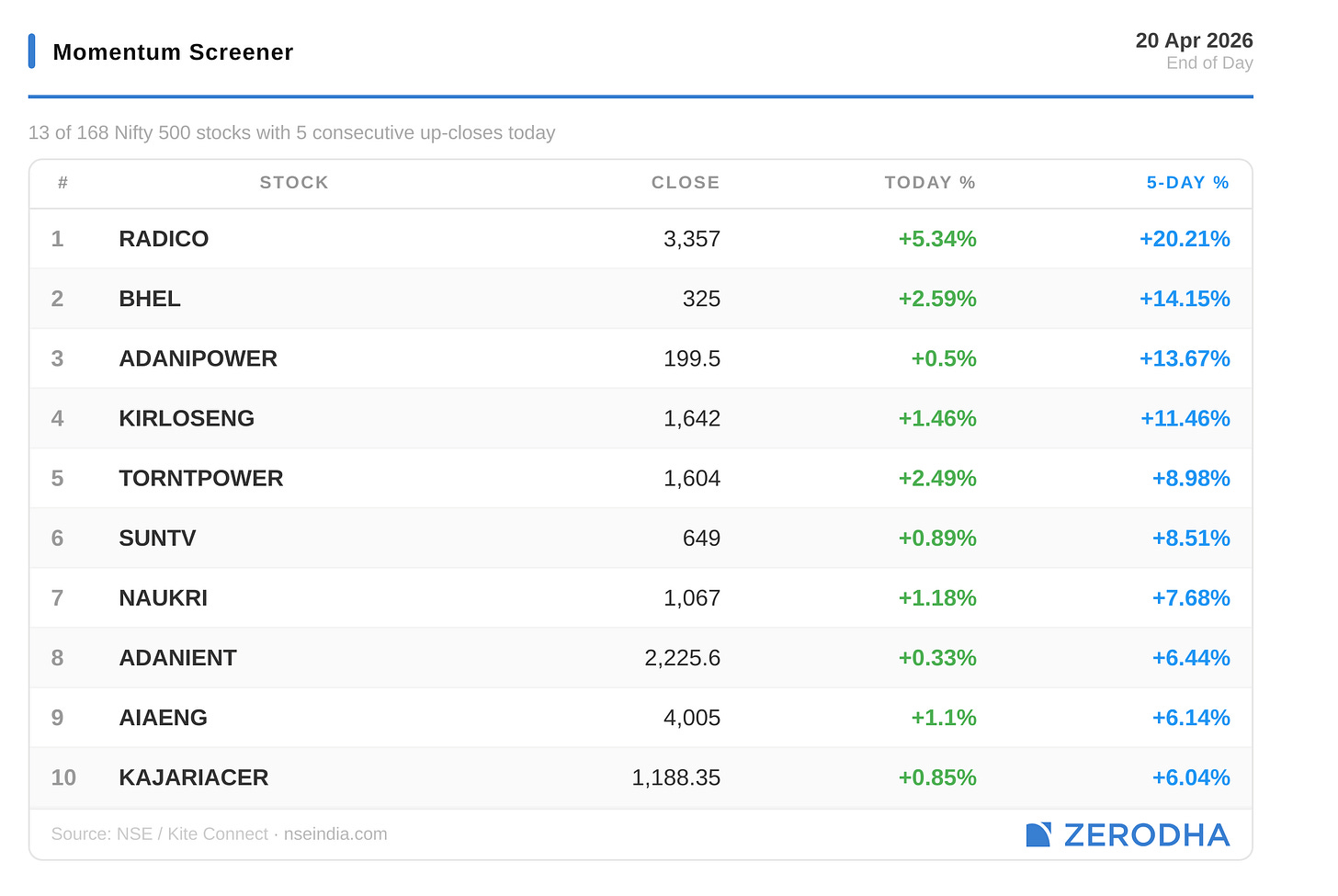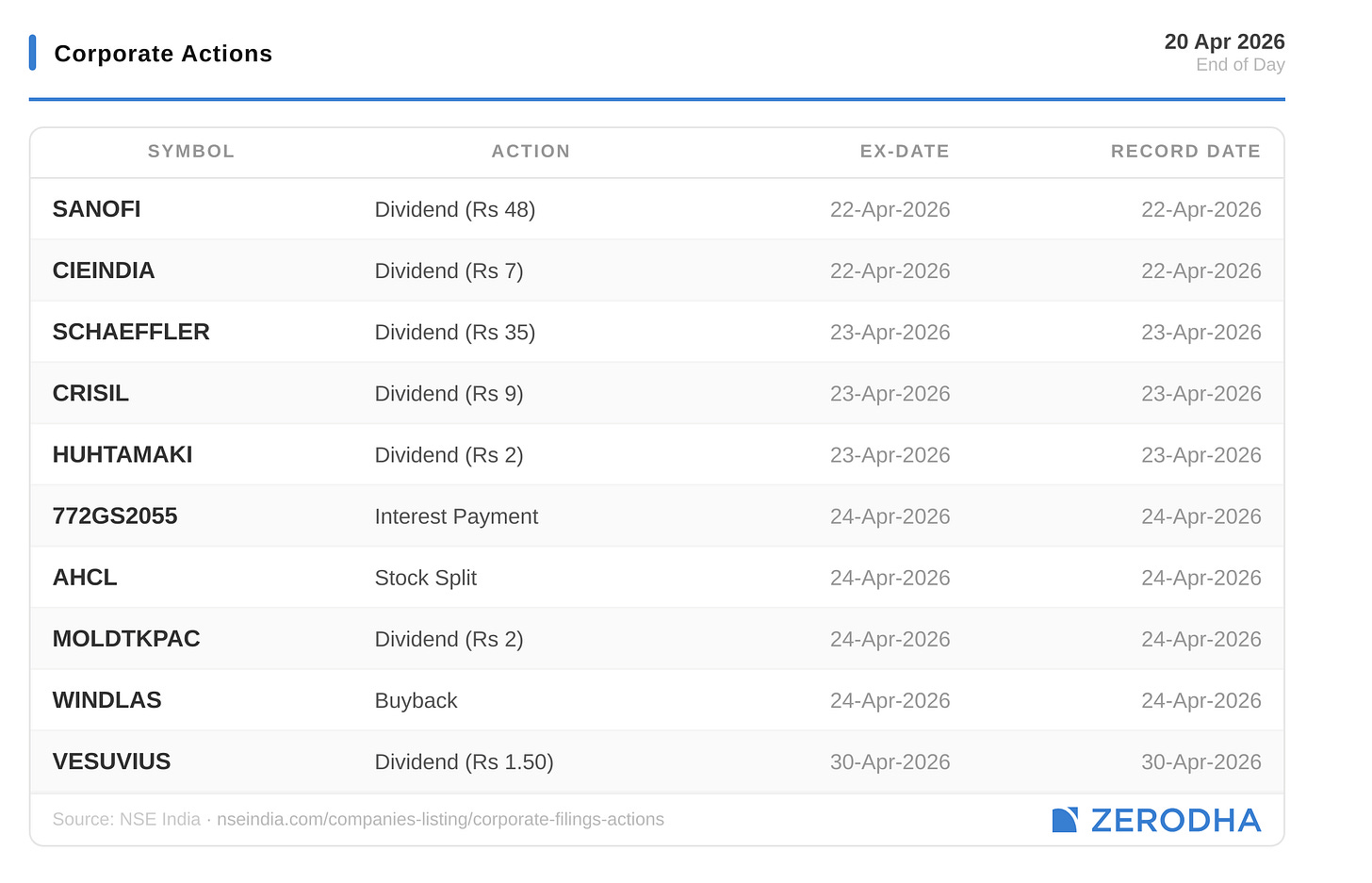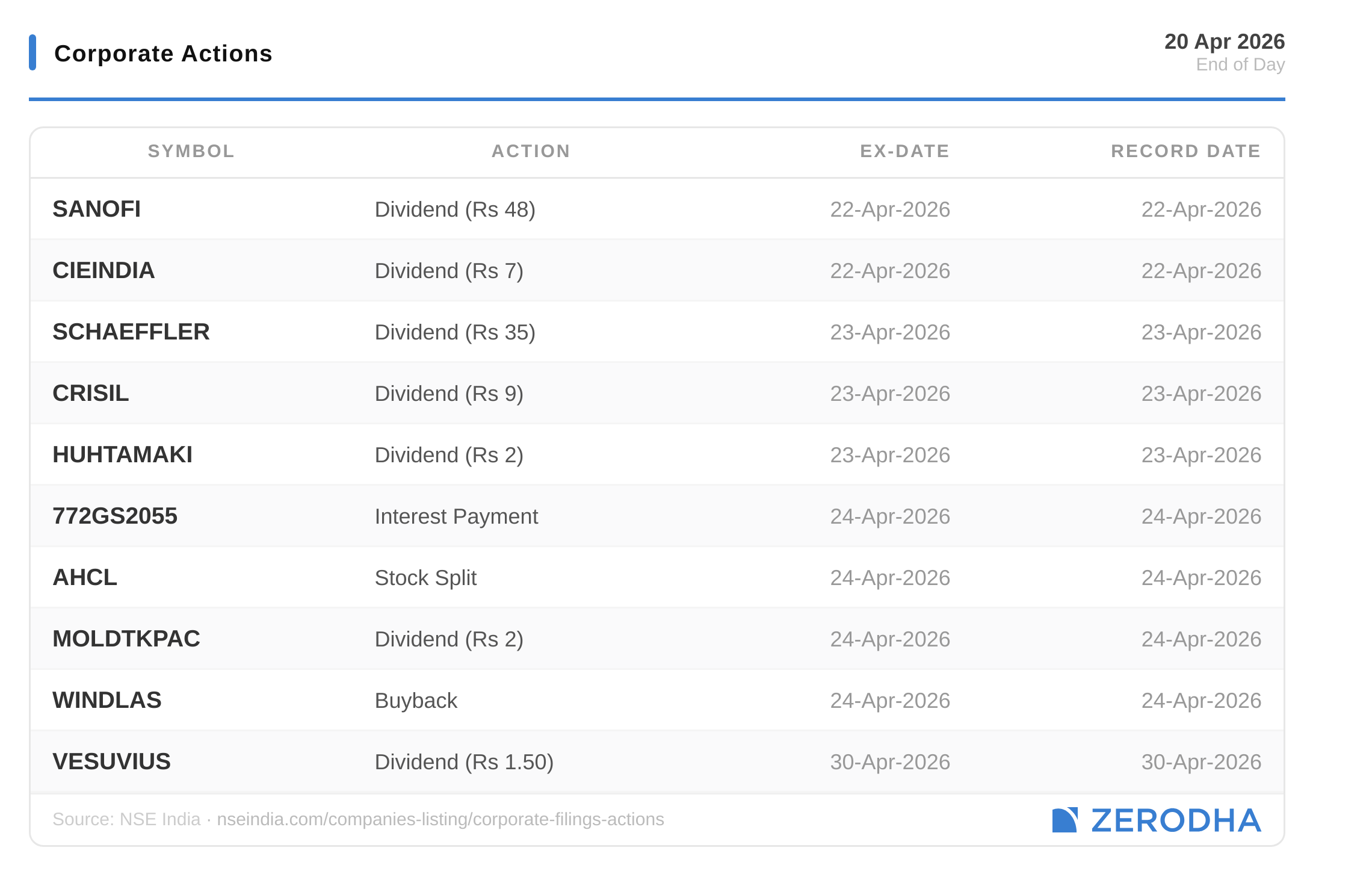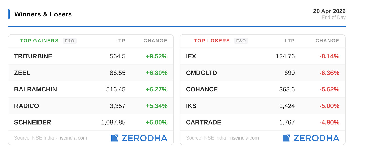 Published by Zerodha. Not investment advice. Data from NSE, BSE, MCX.